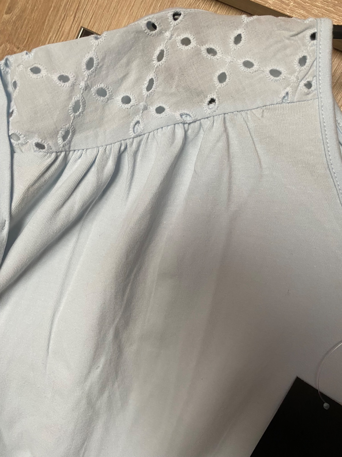 Iba vyskúšane, naživo je farba krajšia svetlomodrá. Píše veľkost S/M. Sadne na S aj M