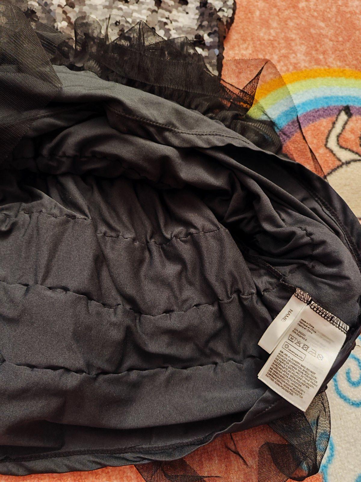 Predám krásne čierne šatočky vo veľkosti 134/140. Oblečené 1x, sú top stav. Sú prekrásne, vrch je bavlnený, strečový, mäkučký, natiahne sa. Mašlička je krásna, kompletná, len sa to zle fotí. V páse...