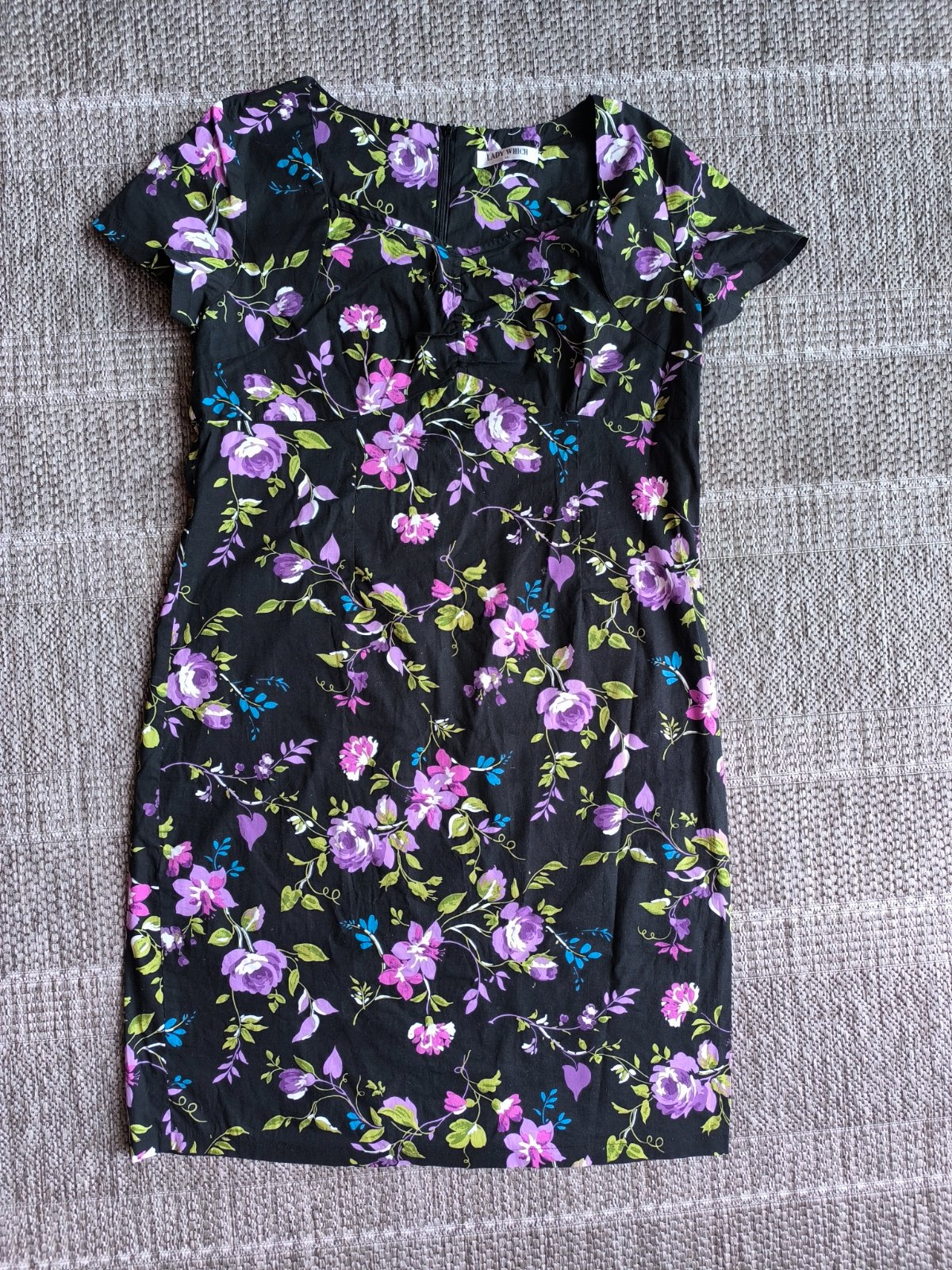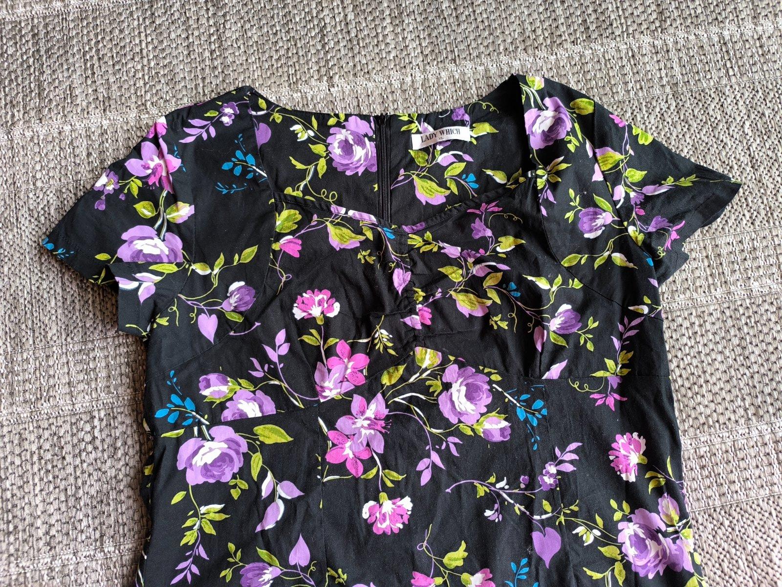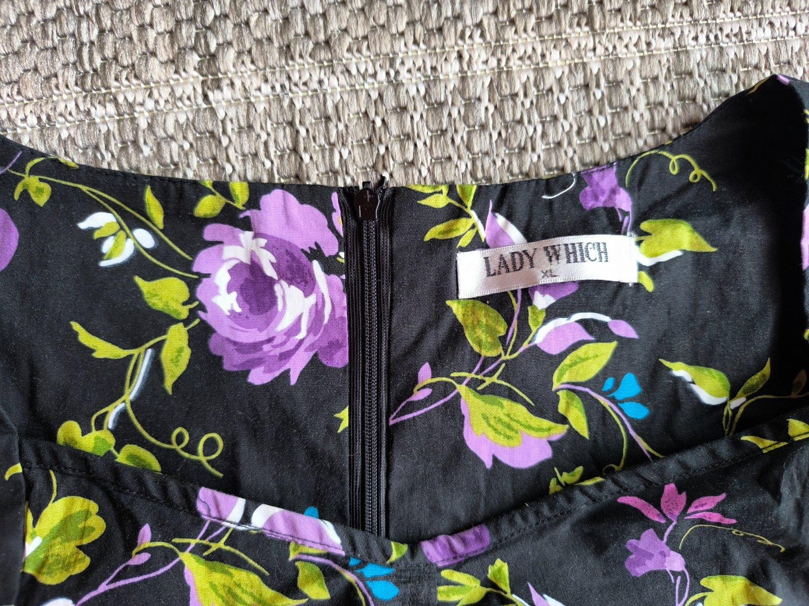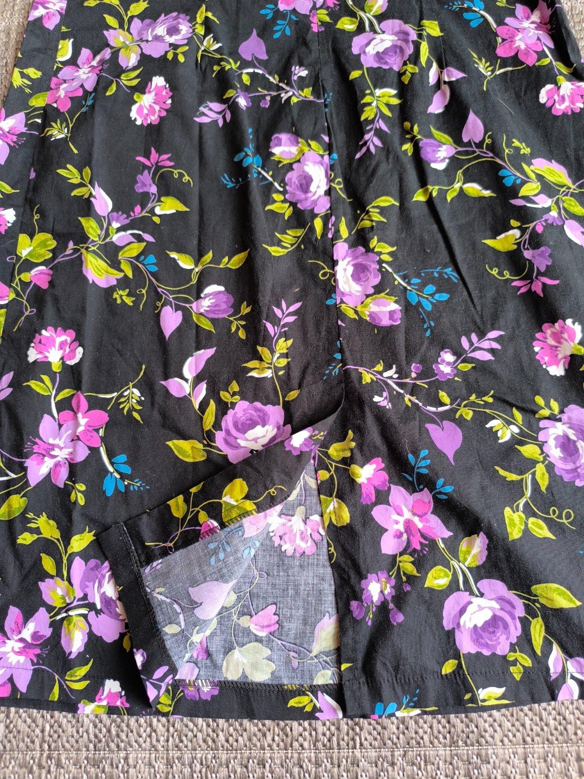 Kvetované letné bavlnené šaty. Perfektný strih, robia krásnu postavu, schovajú brucho. Vzadu majú zips pre pohodlné obliekanie. Naozaj prekrásne, ženské, romantické. Ideálne na leto, dovolenku, ale zároveň aj ako formálne šaty na príležitosť či v lete do práce. V super stave. Veľkosť XL. Rozmery: dĺžka 102cm, šírka cez prsia 54-56cm, v páse 48-50cm, cez boky 58-61cm.