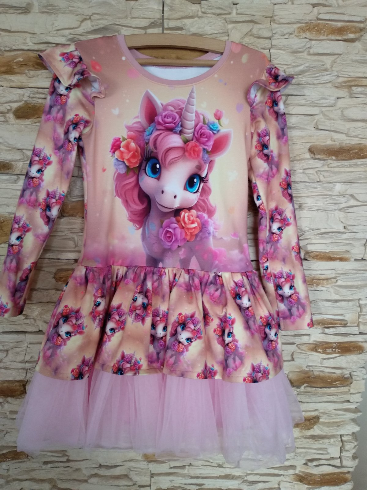 Nádherné dievčenské šaty s Jednorožcom veľkosť 128