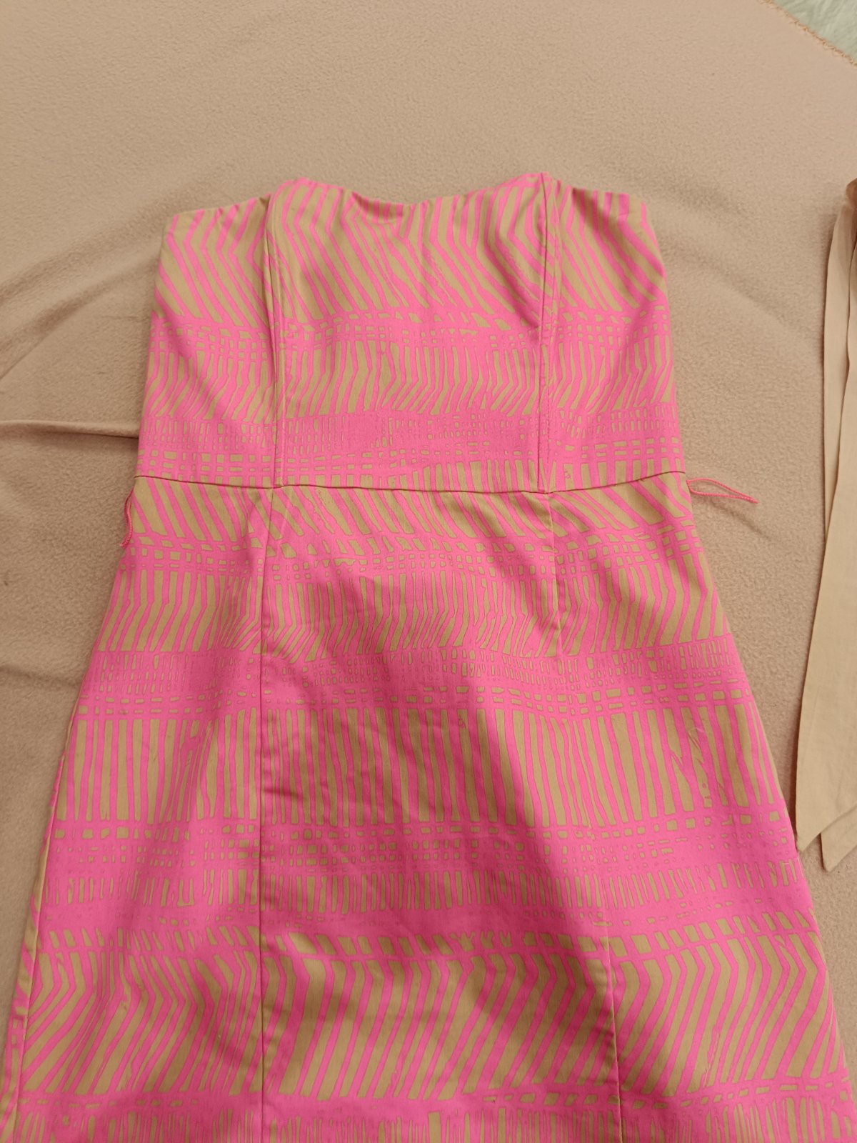veľ.: M miery viď na fotkách Značka: H&M Farba: ružová so vzorom krajky Stav: 1x obl., bez ruk., podšitá, moderný kus Vášho oblečenia, vzadu je zips, strih - rovný 75 polyester, 25 viskóza Výmena ...
