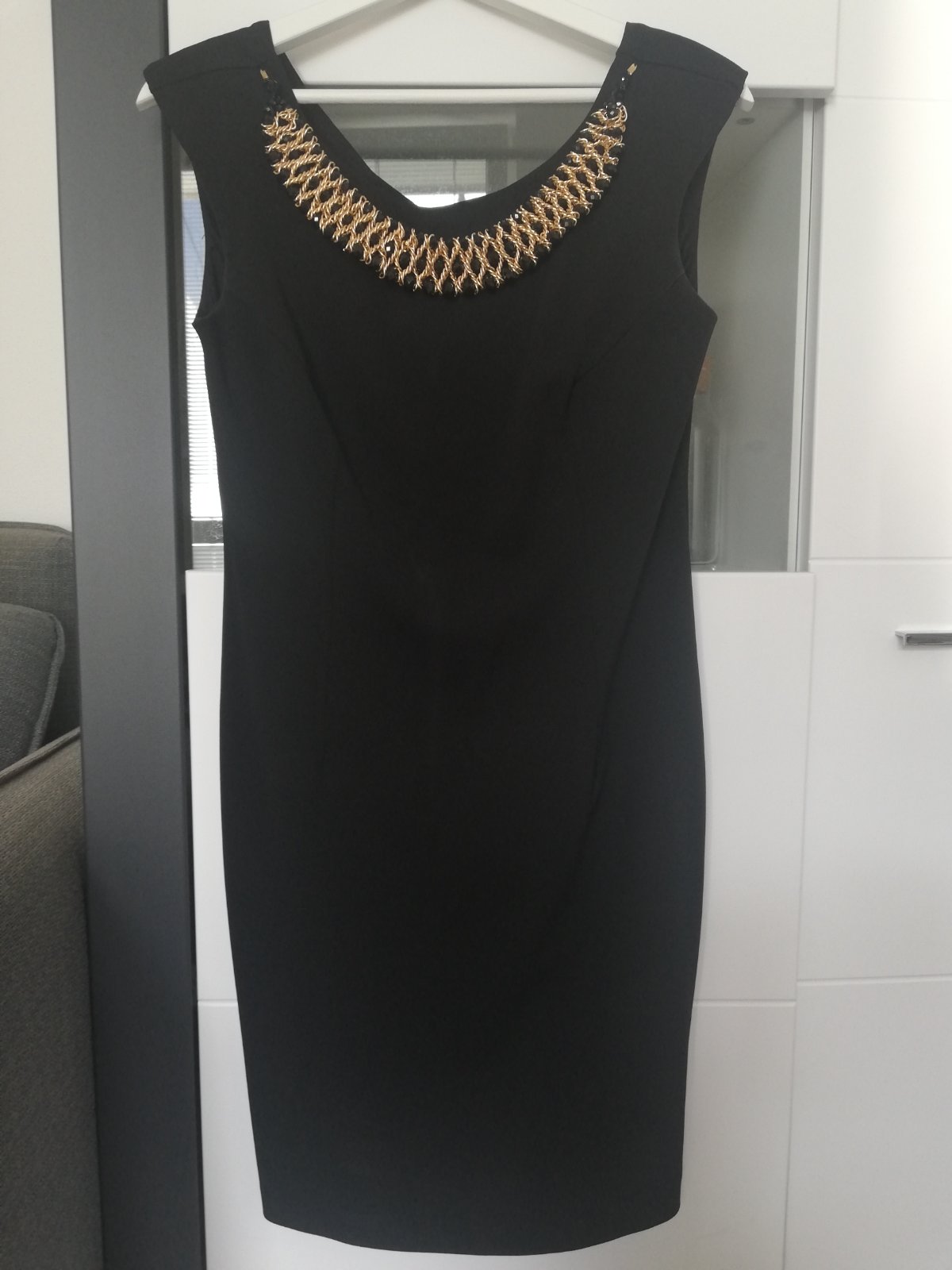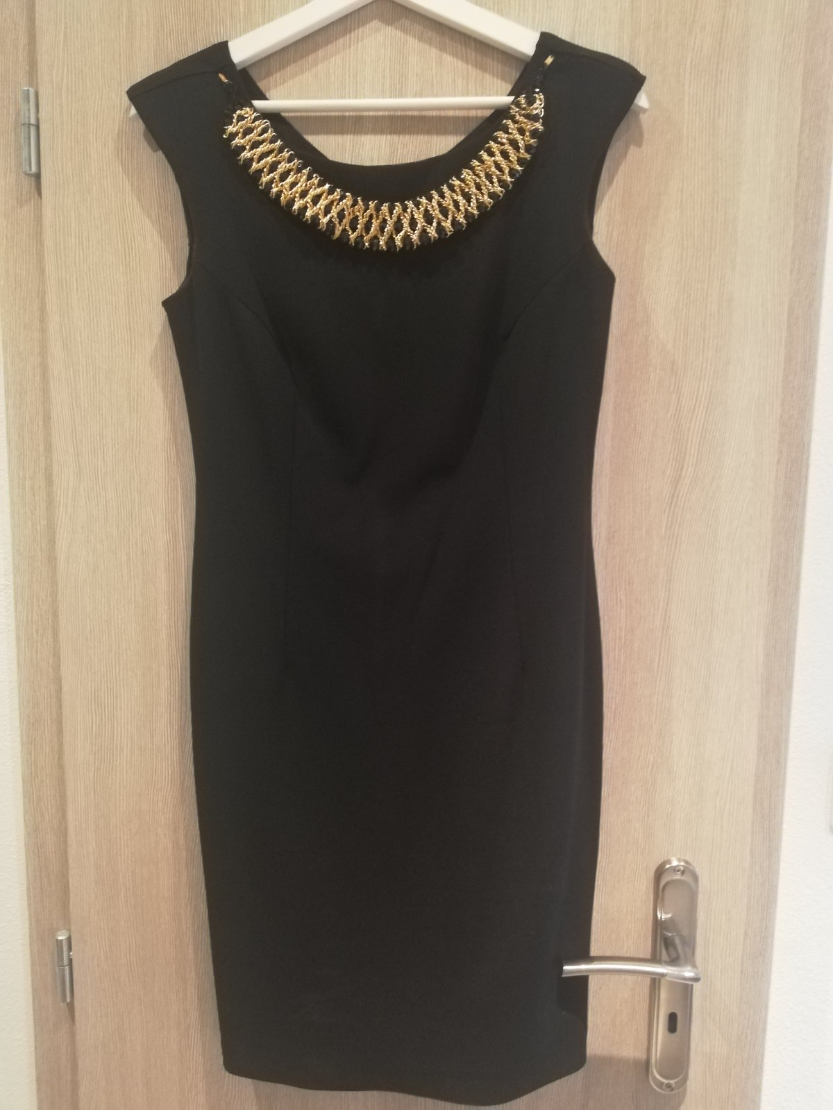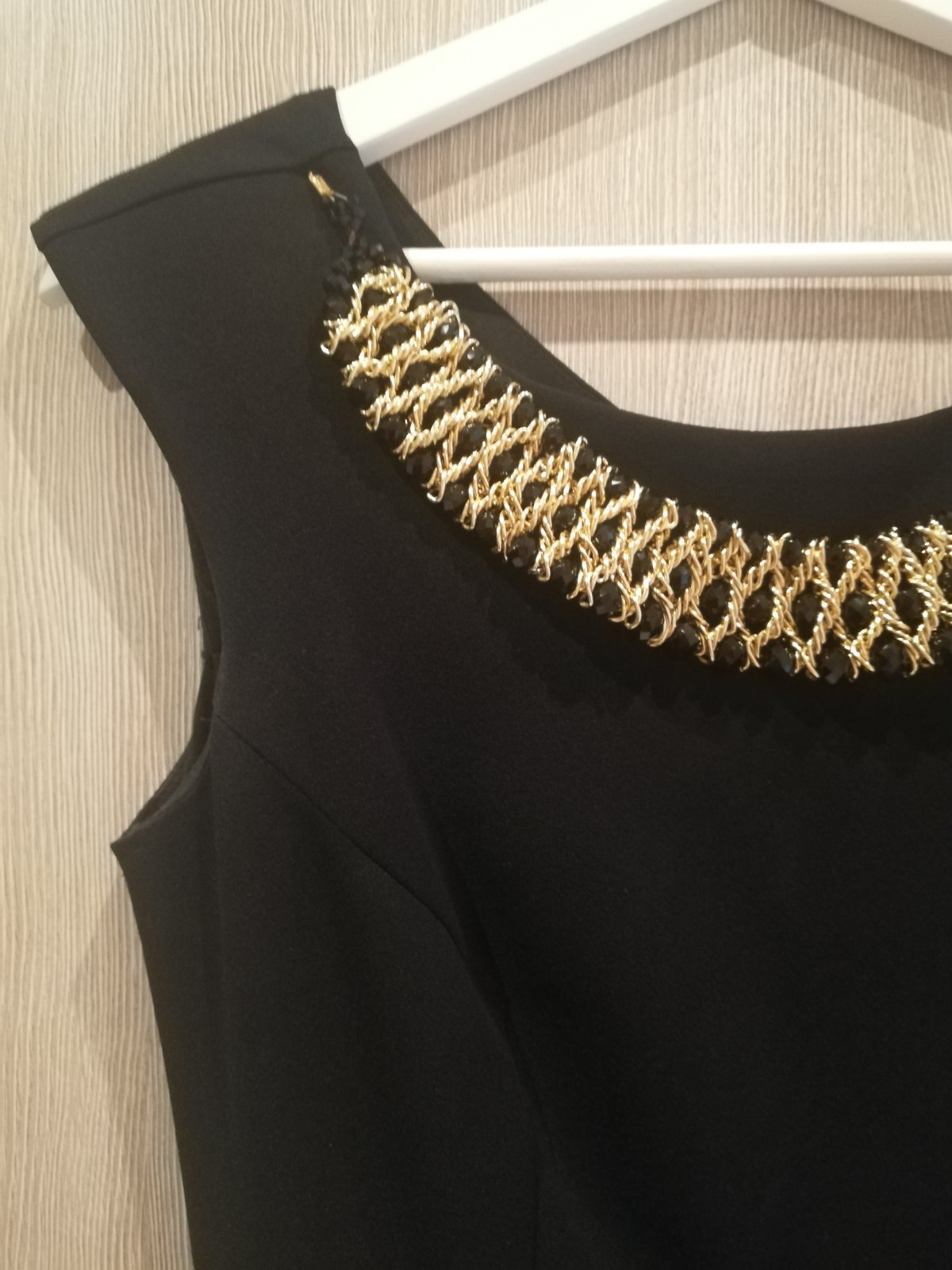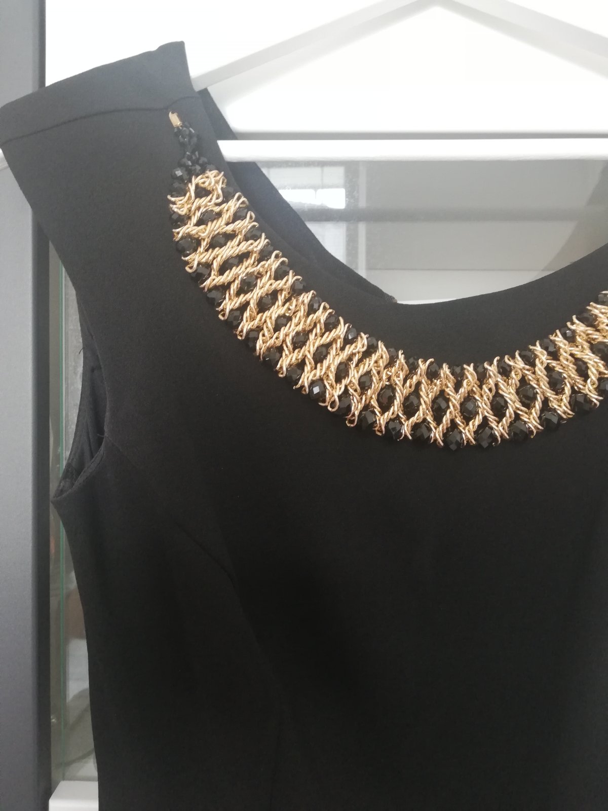 Čierne šaty so zlatým náhrdelníkom, raz oblečené. Veľkosť M.