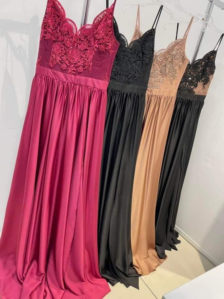 SkladomNa predaj krásne nové spoločenské šaty. Veľkosti od XS-L. Farby: svetloružové, ružové, bordové, červené, slivkové, čierne, čierno-béžové, béžové, capuccinové, smaragdové, tmavozelené, tmavomodré, kráľovske modré,biele.