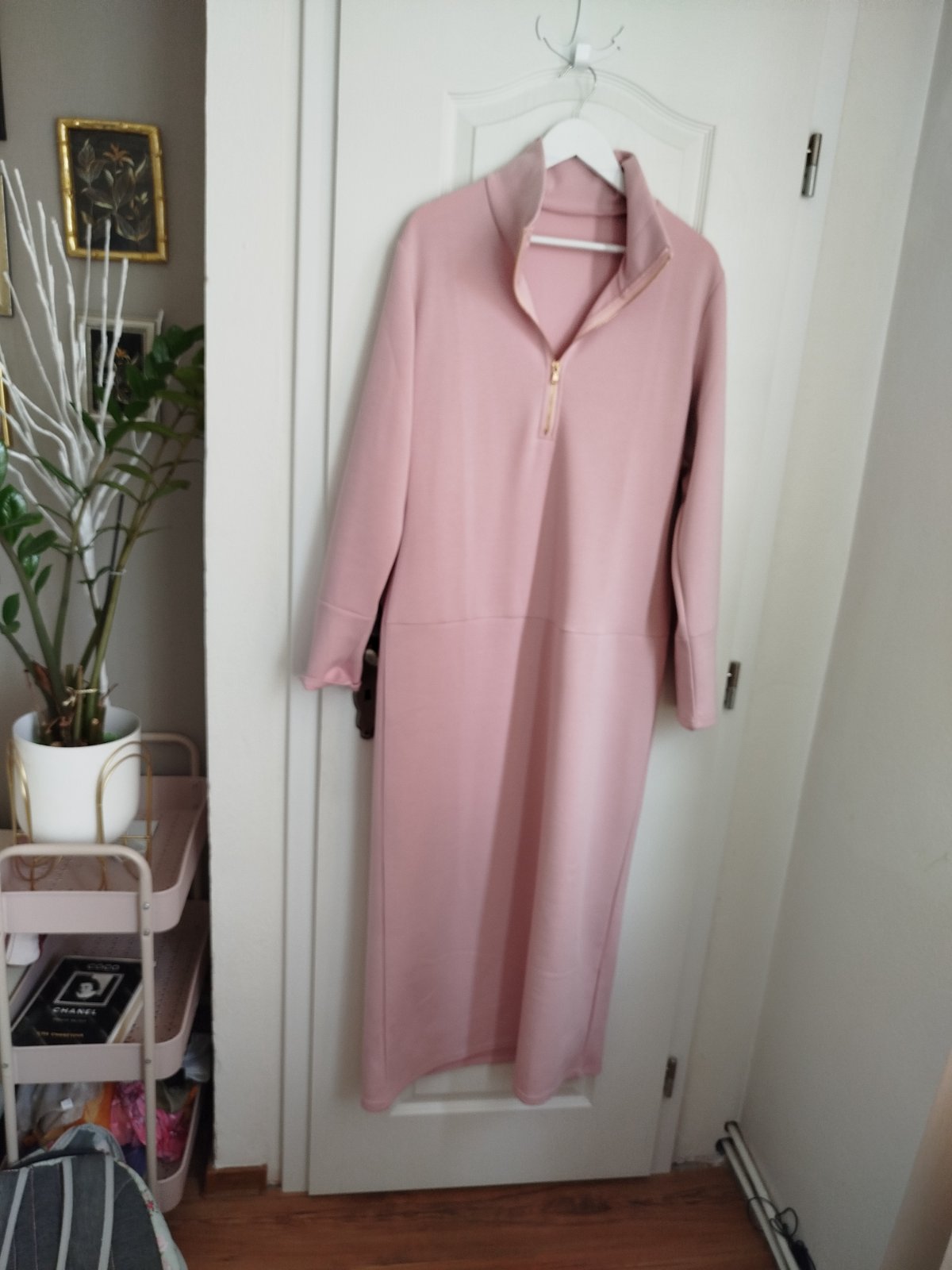 Dlhé pohodlné šaty 1 x oblečené vpredu zips su štýlové,pohodlné majú elastan prispôsobia sa ,dĺžka 140 cm šírka pod pazuchami 53x2cm povolía aj na 60x2cm.