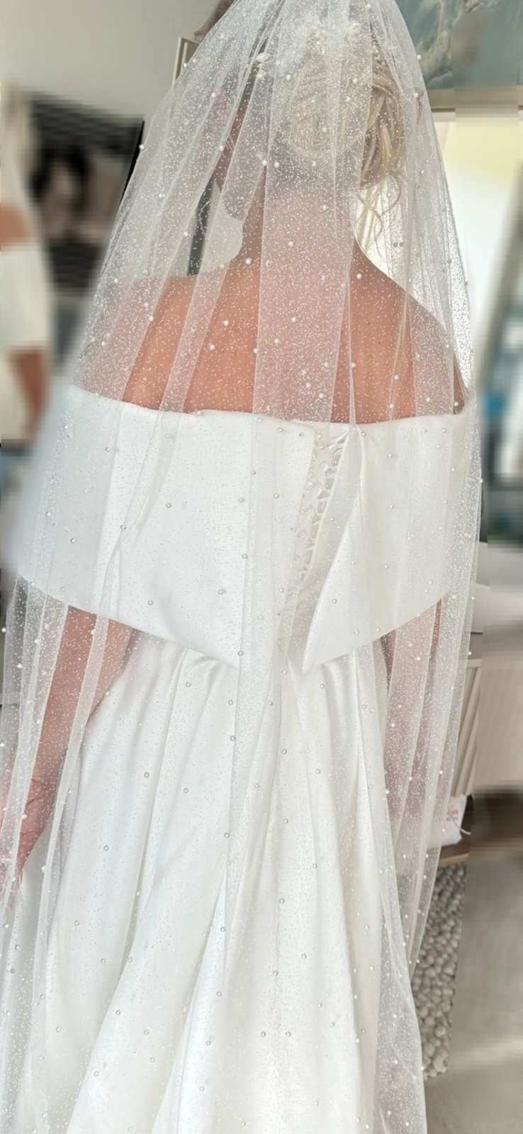 Predám krásne svadobné šaty vo veľkosti 38. Na postave vyzerajú úžasne. Šaty sú úzke,avšak je k nim aj vrchná sukňa s dlhou vlečkou,ktorá vytvára wau efekt. Ja som ju mala na obrade a na oslave som si ju dala dole :) K šatám je dlhý perličkový závoj. Šaty boli úplne nové,boli kupované v svadobnom salóne :) sú prenádherné,predávam ich za 300 eur aj so závojom. Prípadne dohoda 🥰