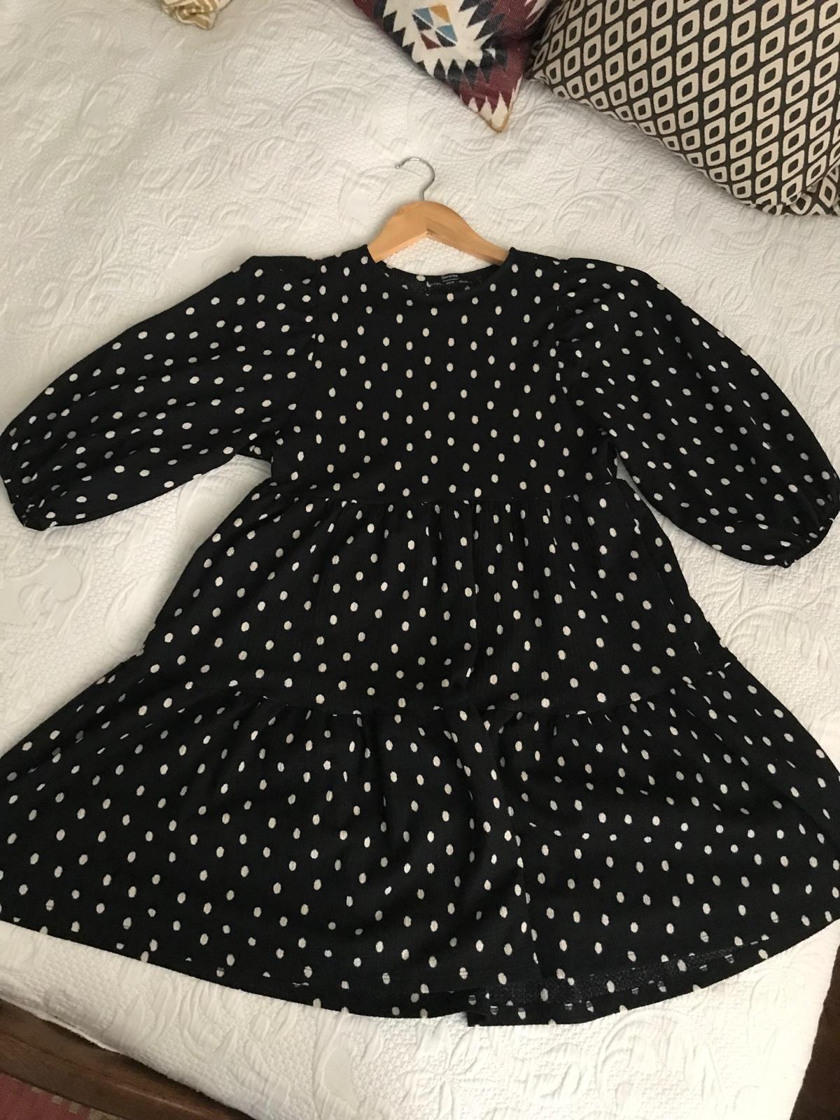 TOP STAV, AKO NOVÉ Krásne, štýlové, nadčasové šaty s volanovymi rukávmi 1x oblečené šaty Dĺžka 73cm Hrudnik 42cm Prispôsobia sa Krasne sedia na postave Aj pre xs aj s, skor vsak s