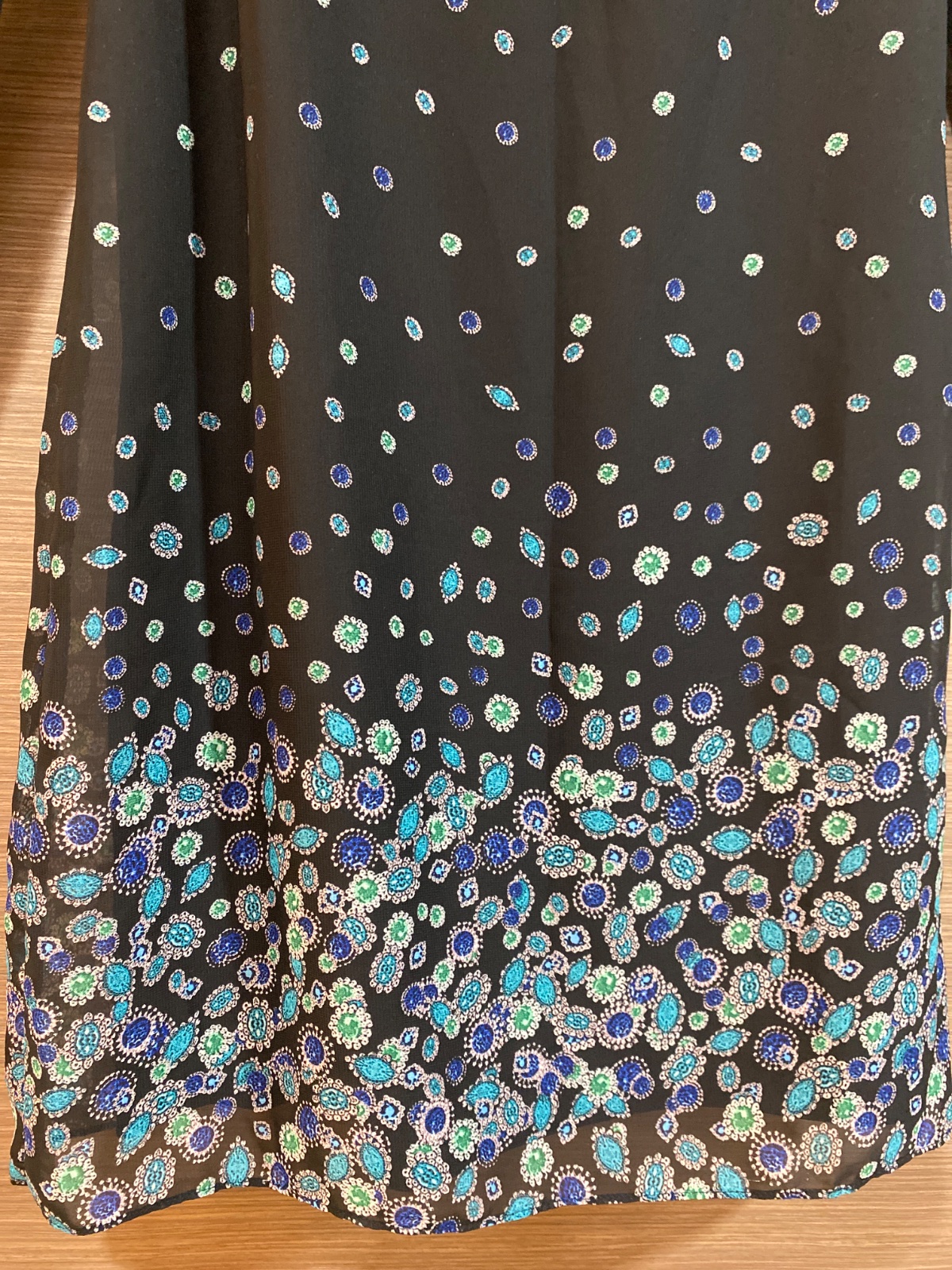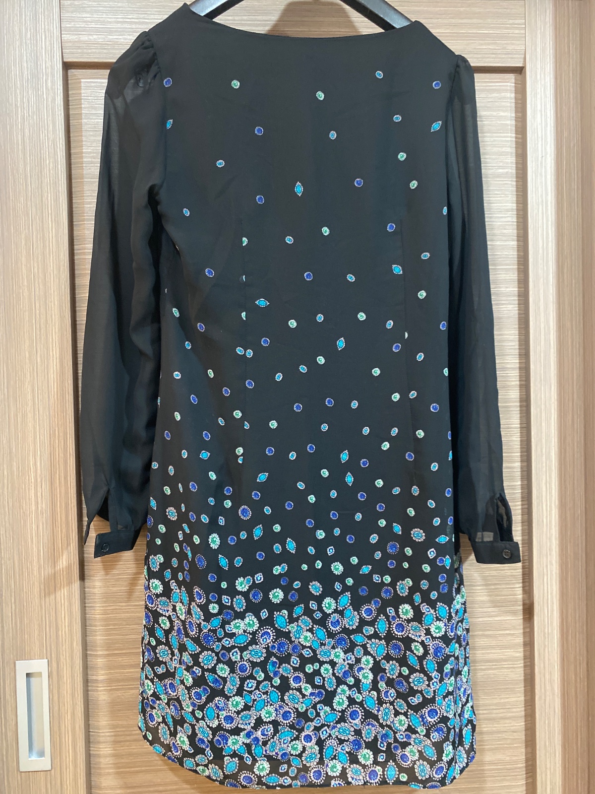 Dĺžka šiat je 86 cm, rukáv 56 cm, pekný vzor, s podšívkou. Veľmi pekné, ako nové.