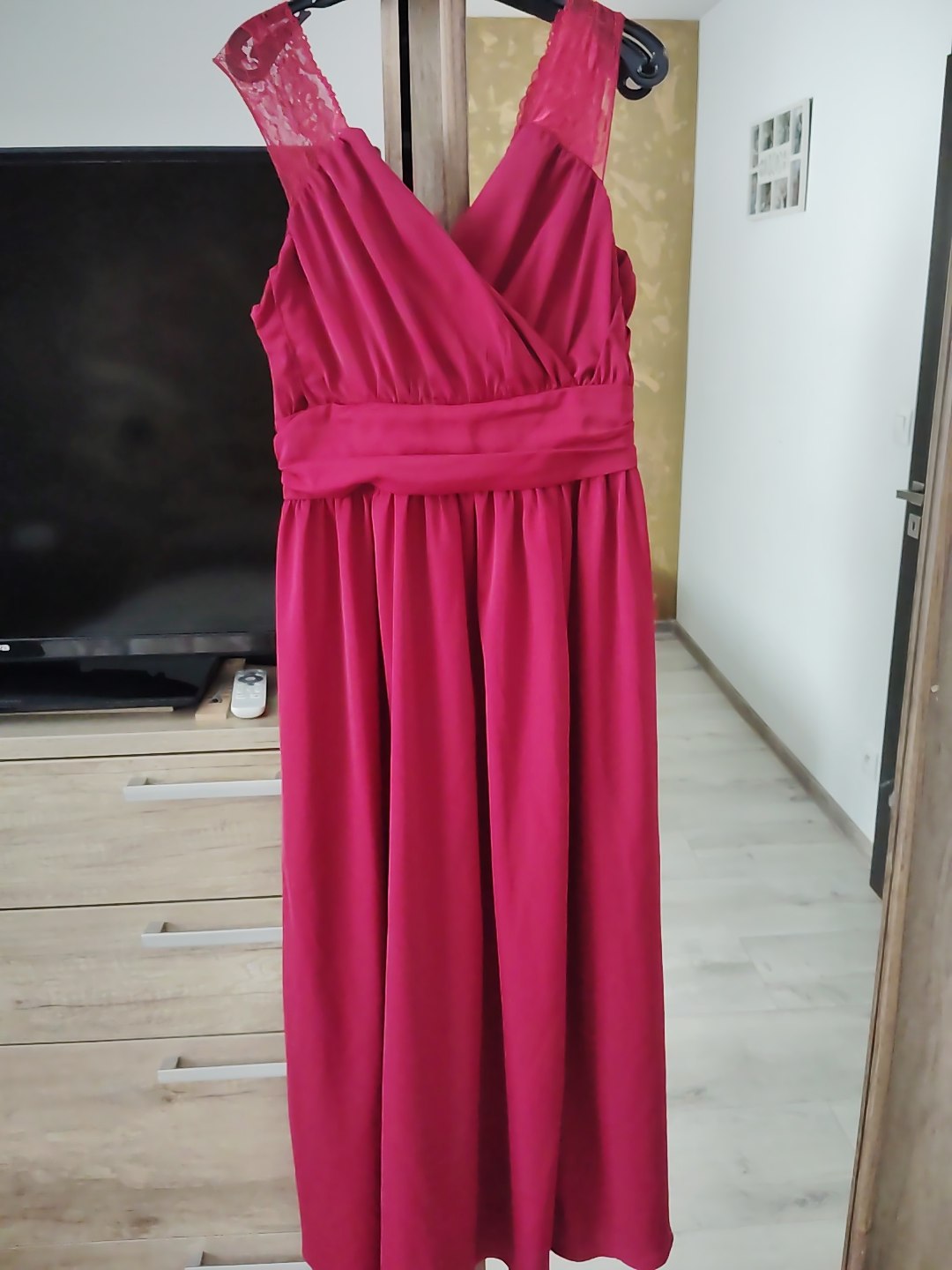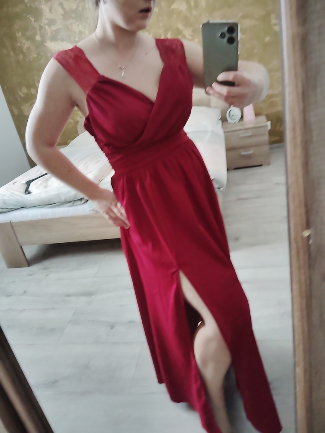 Raz oblečenè na ples ,màm aj bolerko červenè teplè aj čuetne ,tašku zlatú a doplnky v prìpade zàujmu ,velkost sedí na S/M ,sù velmi pohodlnè ,prìjemnè ,màm výŝku 165 cm a 62 kg ,mne boli s lodičkam...