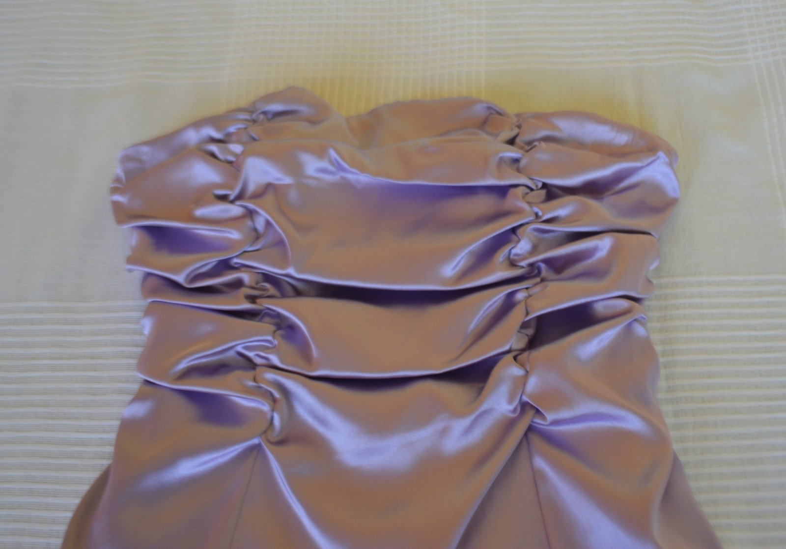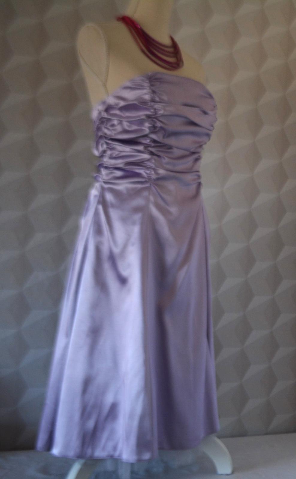 Krásne kokteilové šaty zn. JUJU & CHRISTINE Paris, veľ. XS, rozmery: dĺžka 100cm, pod pazuchami 2x40cm, pás 2x38cm. Farba svetlučká fialová. Šaty majú všitú vystuženú podprsenku, inú nepotrebujete.