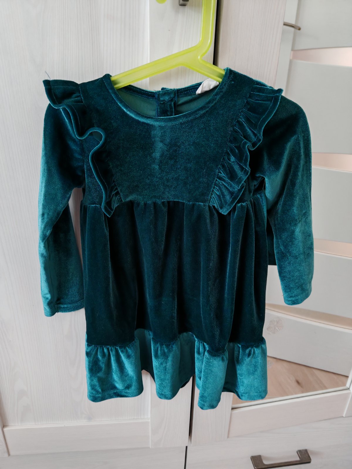 Predam nove, 2 x oblecene krasne satocky zamatove top stav, tmavozelene, sadnu od velkosti 80 az do 98.Prisposobia sa.