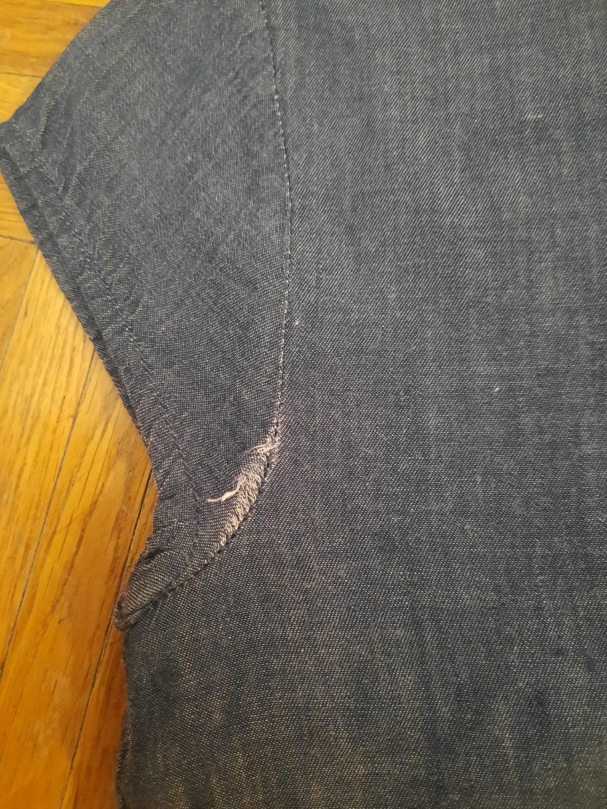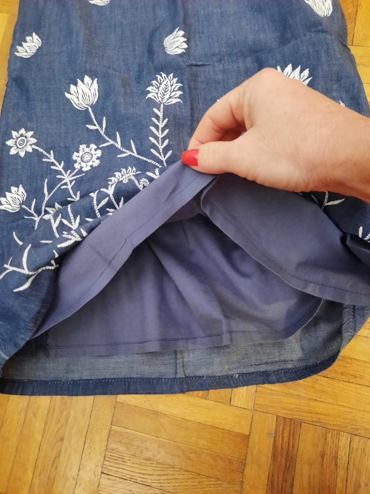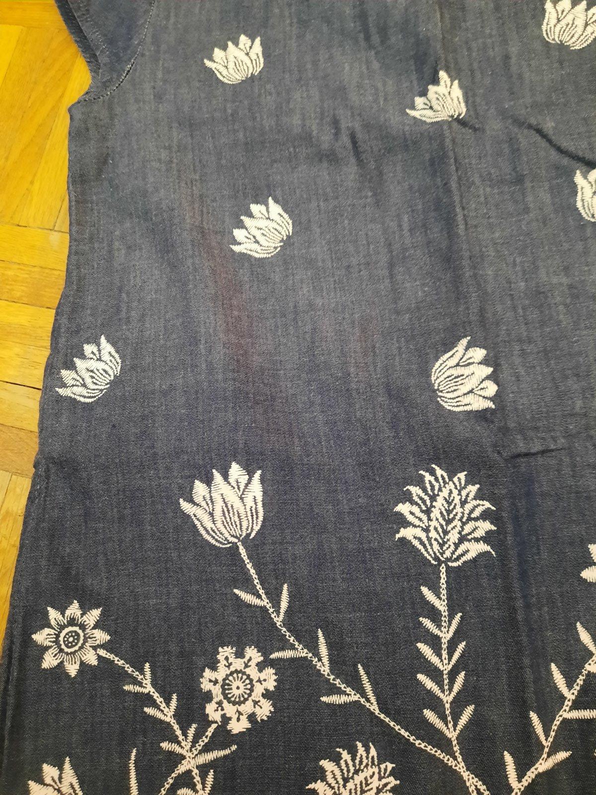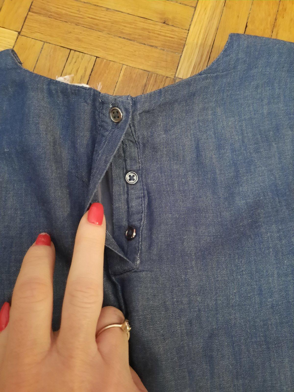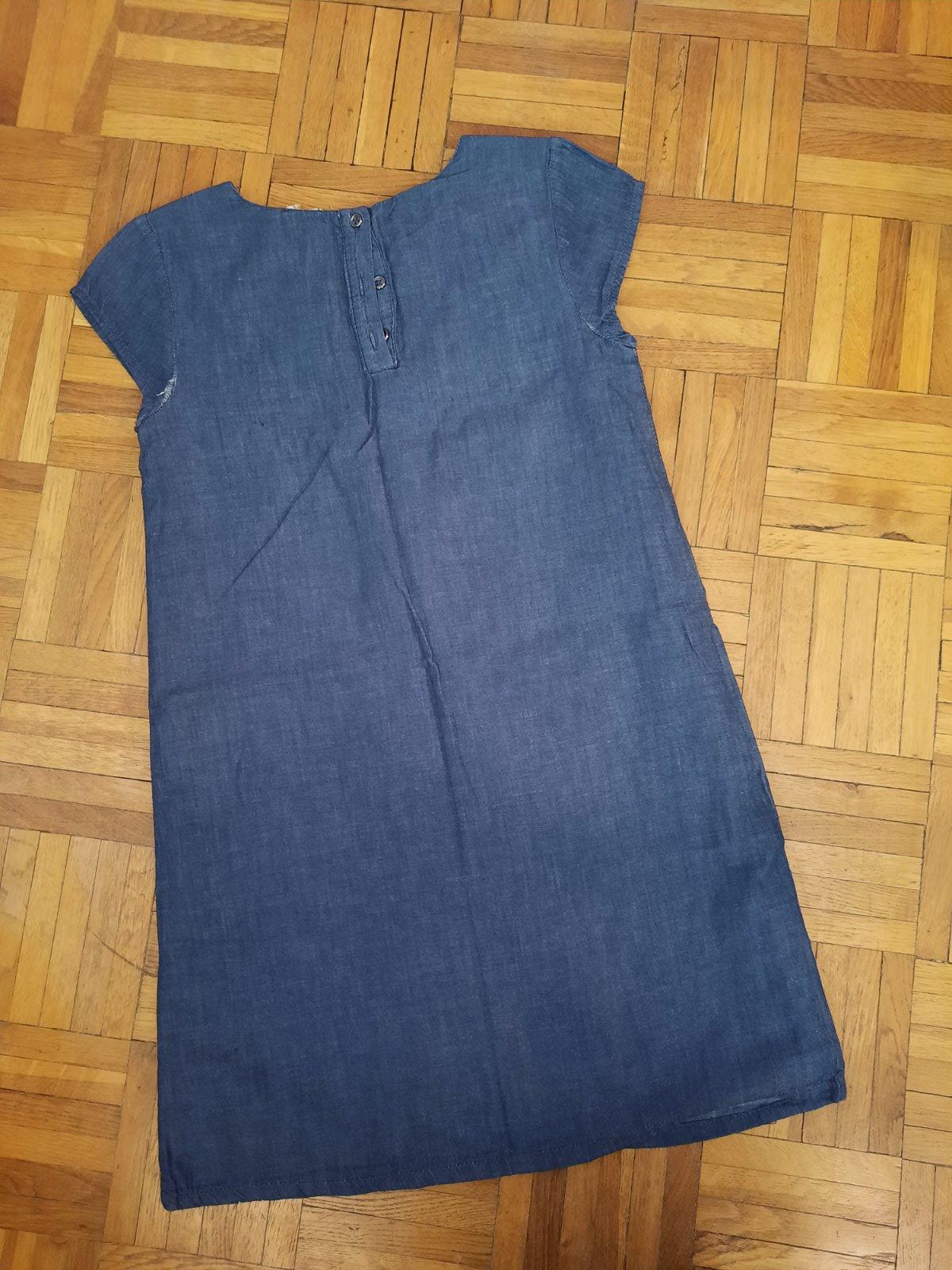 Predám veľmi pekné podšité šatičky z tenkej rifľoviny. Sú vhodné na bežné nosenie, ale kľudne aj na nejakú príležitosť. Vzadu sú 3 gombíky na ľahšie obliekanie sa. Majú malinkú chybičku- vzadu pri ľavom rukáve je látka pei šití trošku uvoľnená. Visačka s veľkosťou a značkou je vystrihnutá- riaďte sa rozmermi prosím.