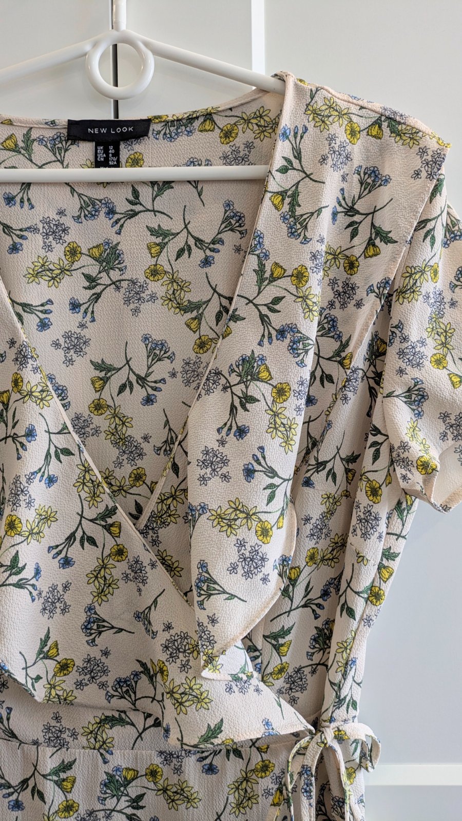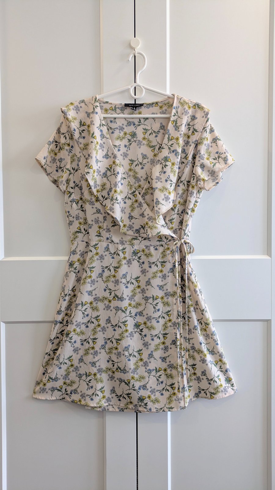 ⚜️ Krémové kvetinkové zavinovacie šaty s volánom, ľahký príjemný materiál, pekný ženský strih