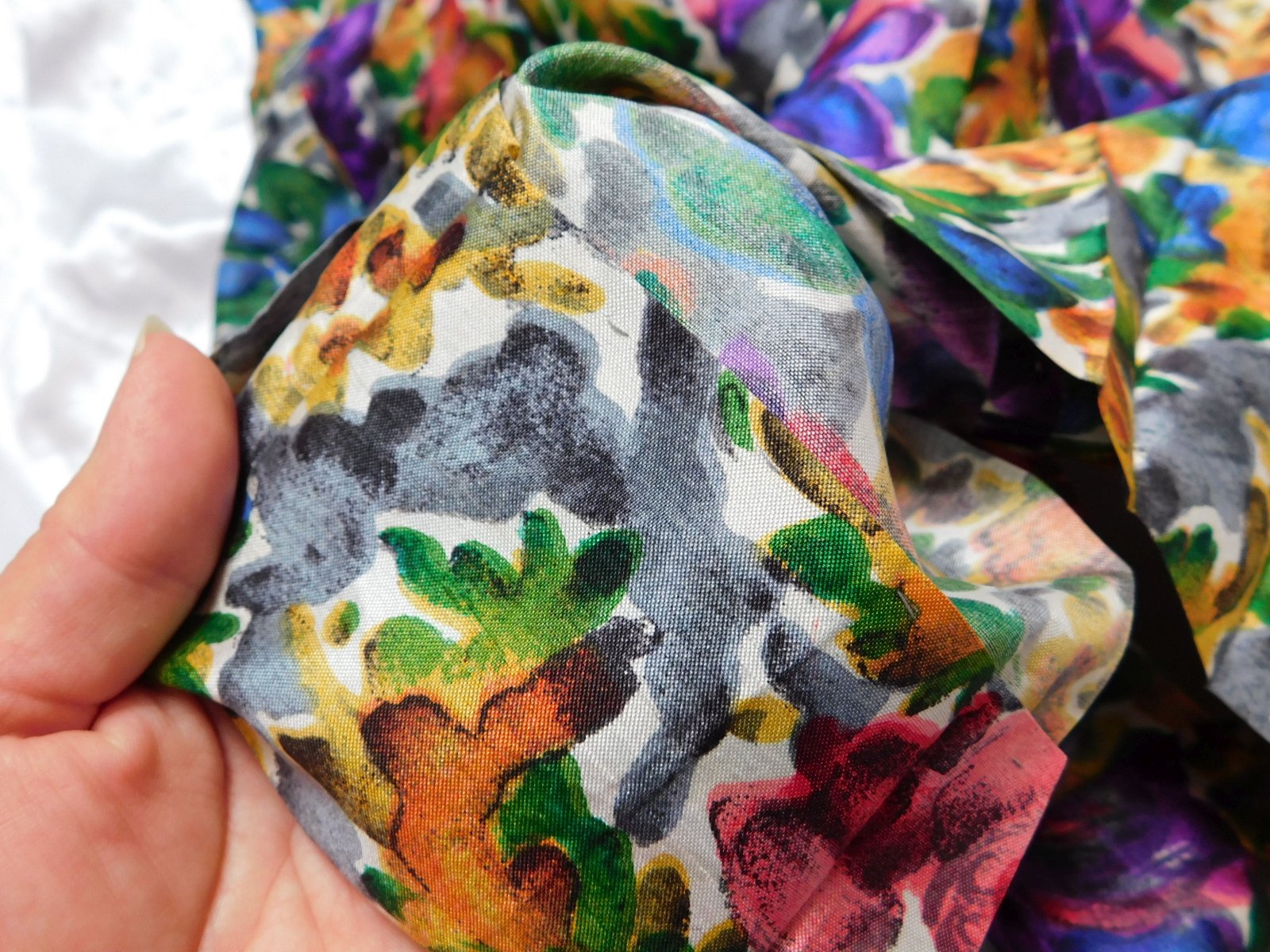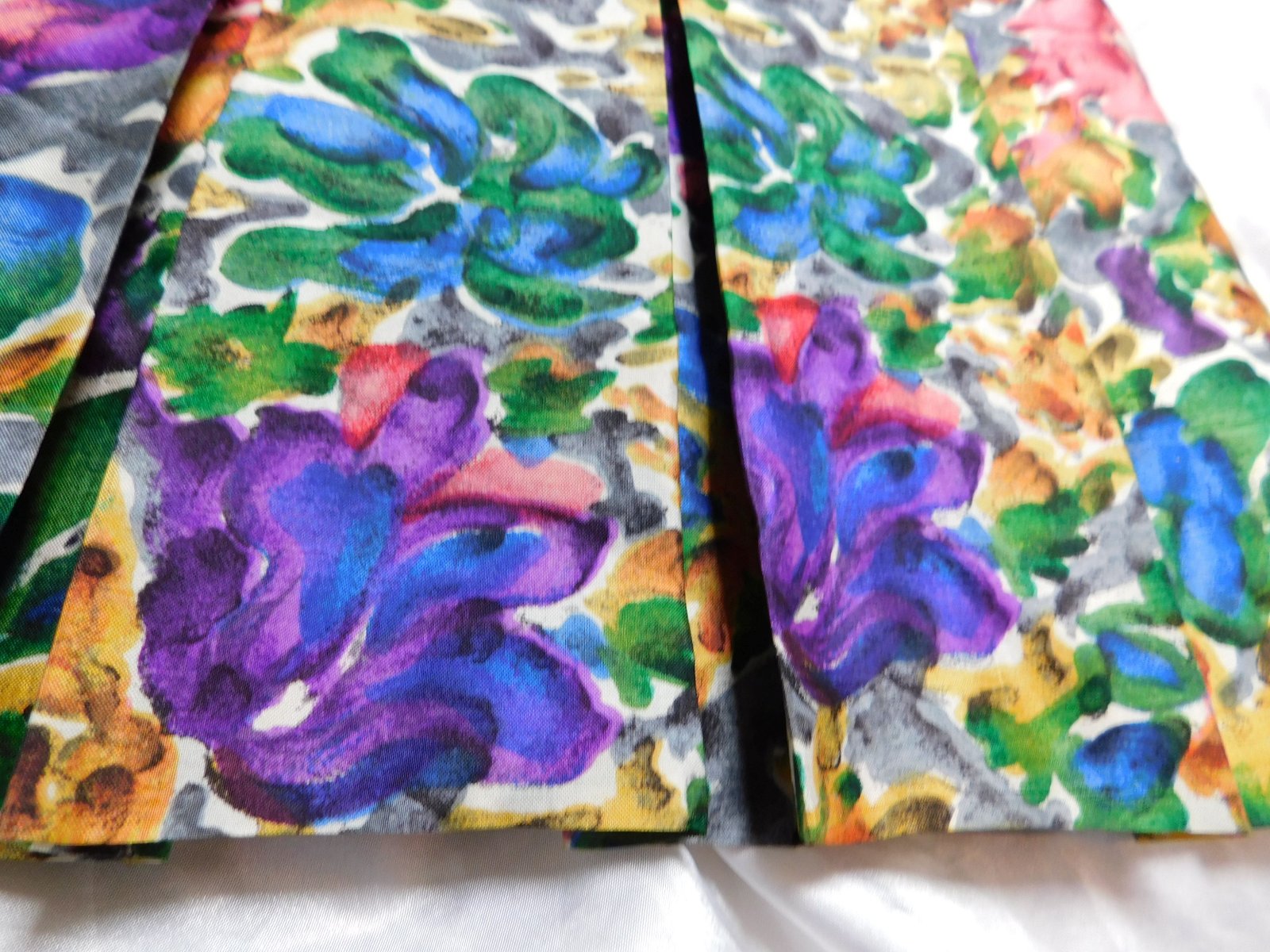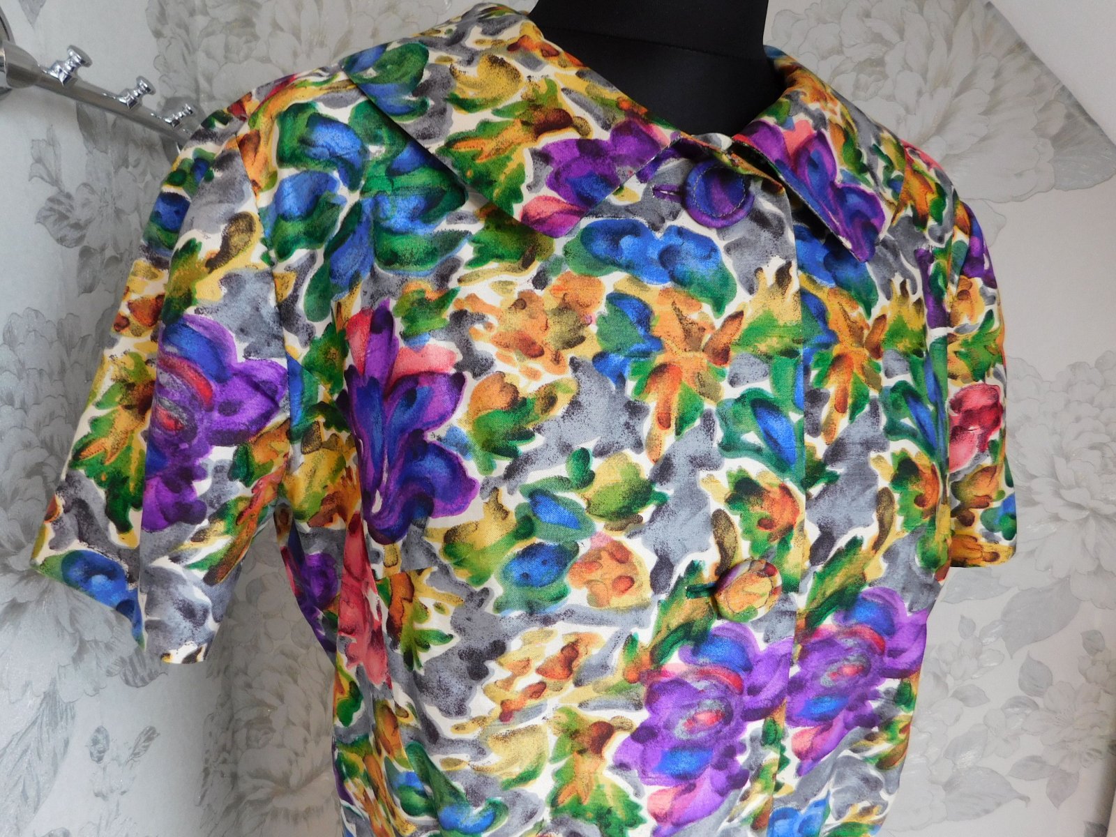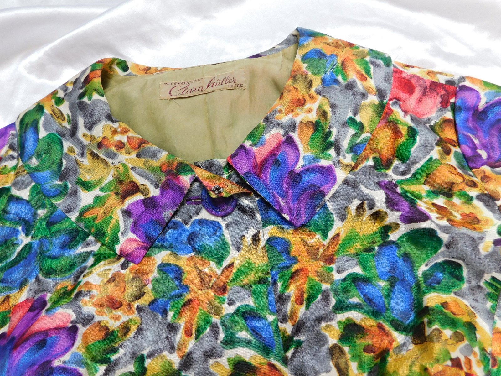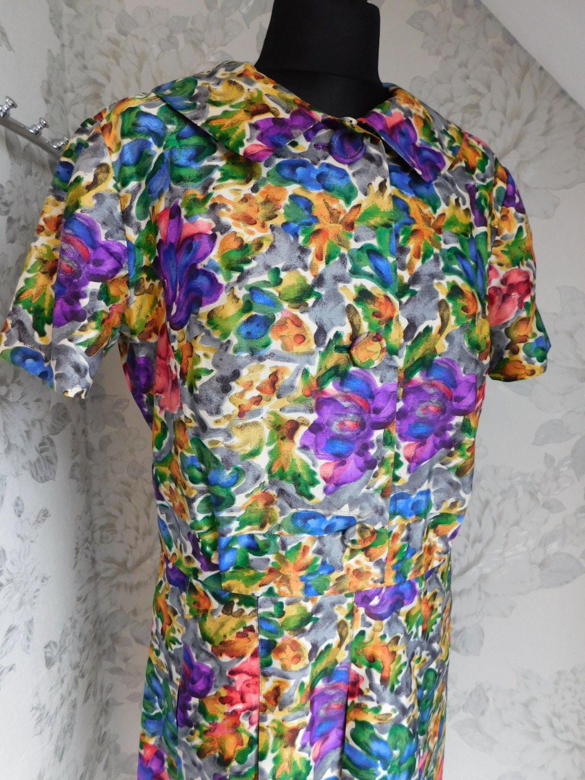 Luxusne velmi pekne vintage šaty,s potlačou,vpredu gombikova lega,vzadu od pasu kratky zips,na spodku zahnute 8cm.treba počistit,inak super stav.se1