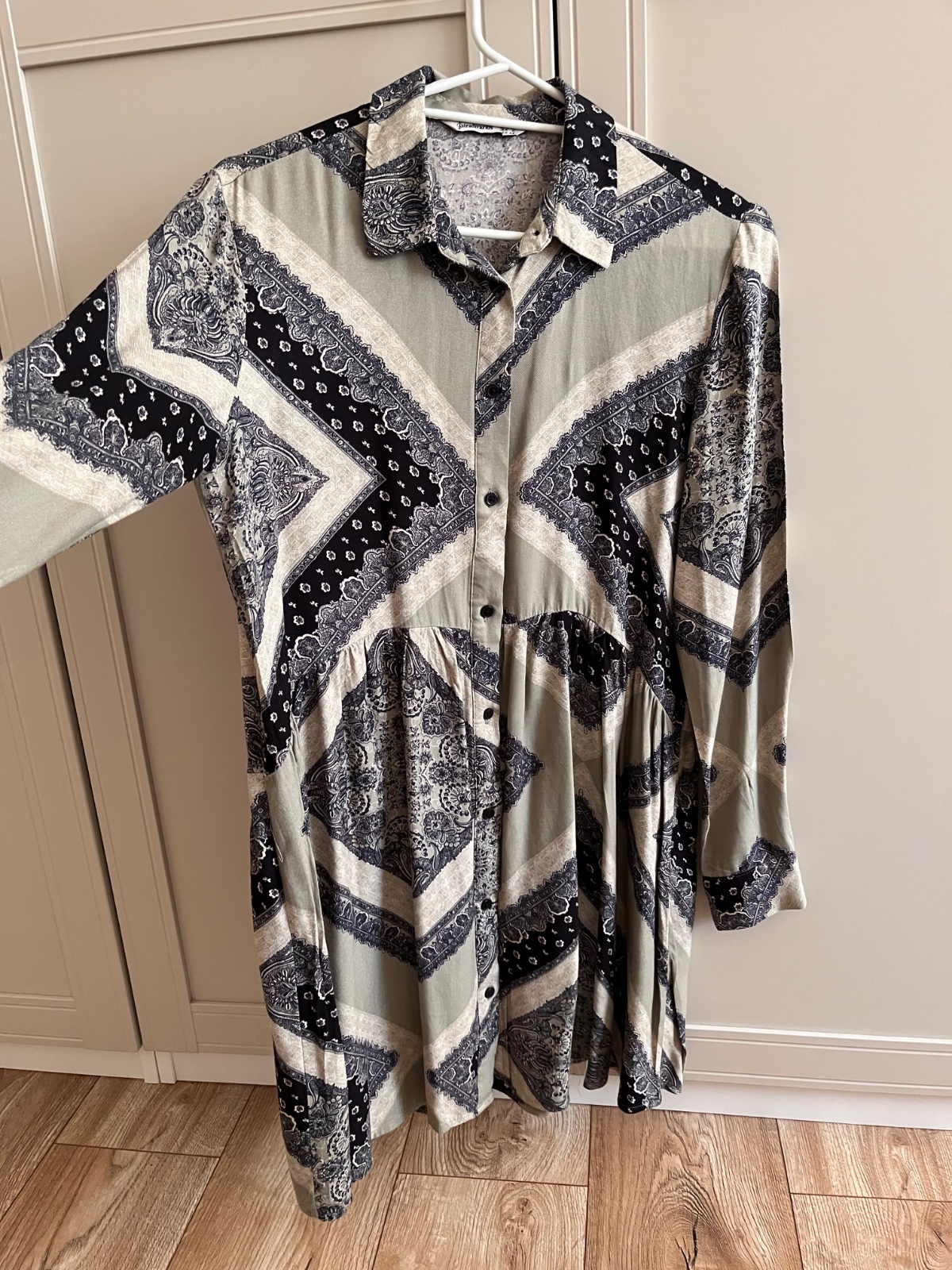 Košeľové šaty značky H&M, veľkosť 38. Zapínanie pozdĺž na gombíky. Bez poškodení.