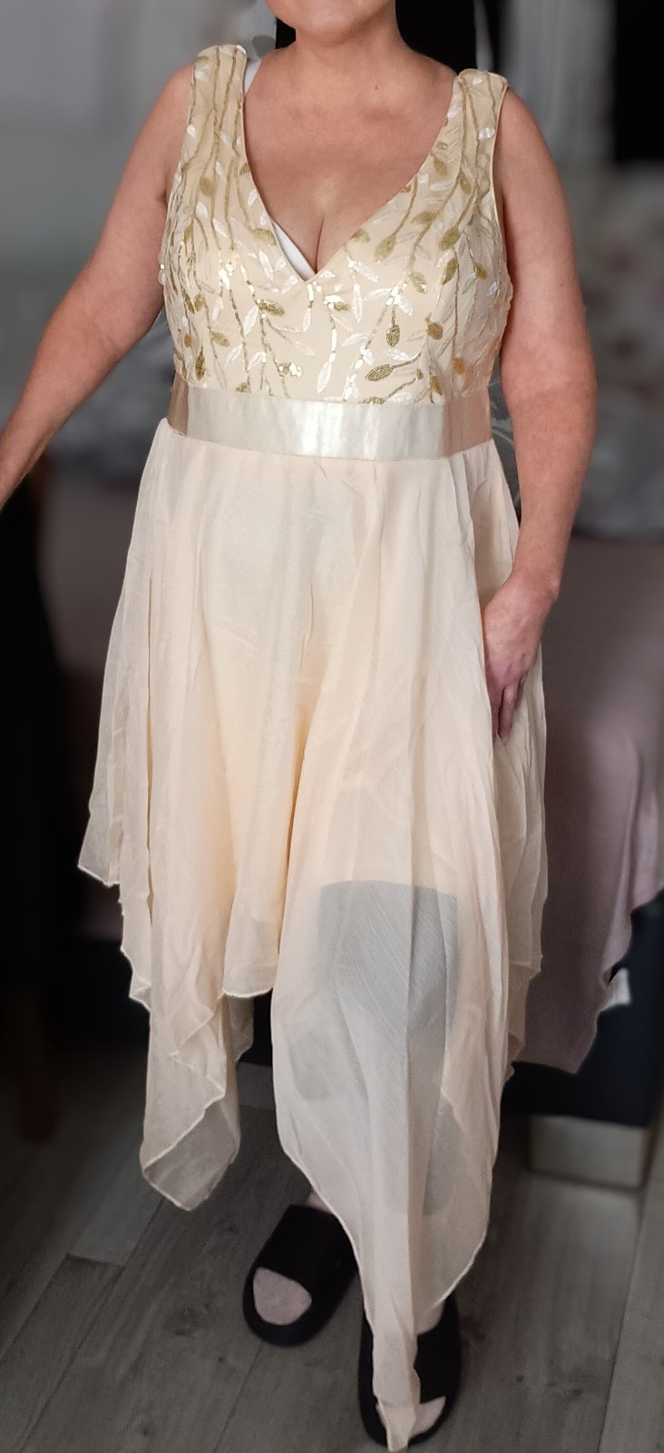 Dobrý deň... predám úplne nové šaty, objednané s Temu ale mne vôbec nesadli. Mám výšku 165 cm,70 kg, väčšie bruško aj poprsie. Nenosím opätky takže tak. Cítim sa v nich ako v zástere,aj keď sú krásne. Možno niekomu vyššiemu, z opaskom sadnú krásne.