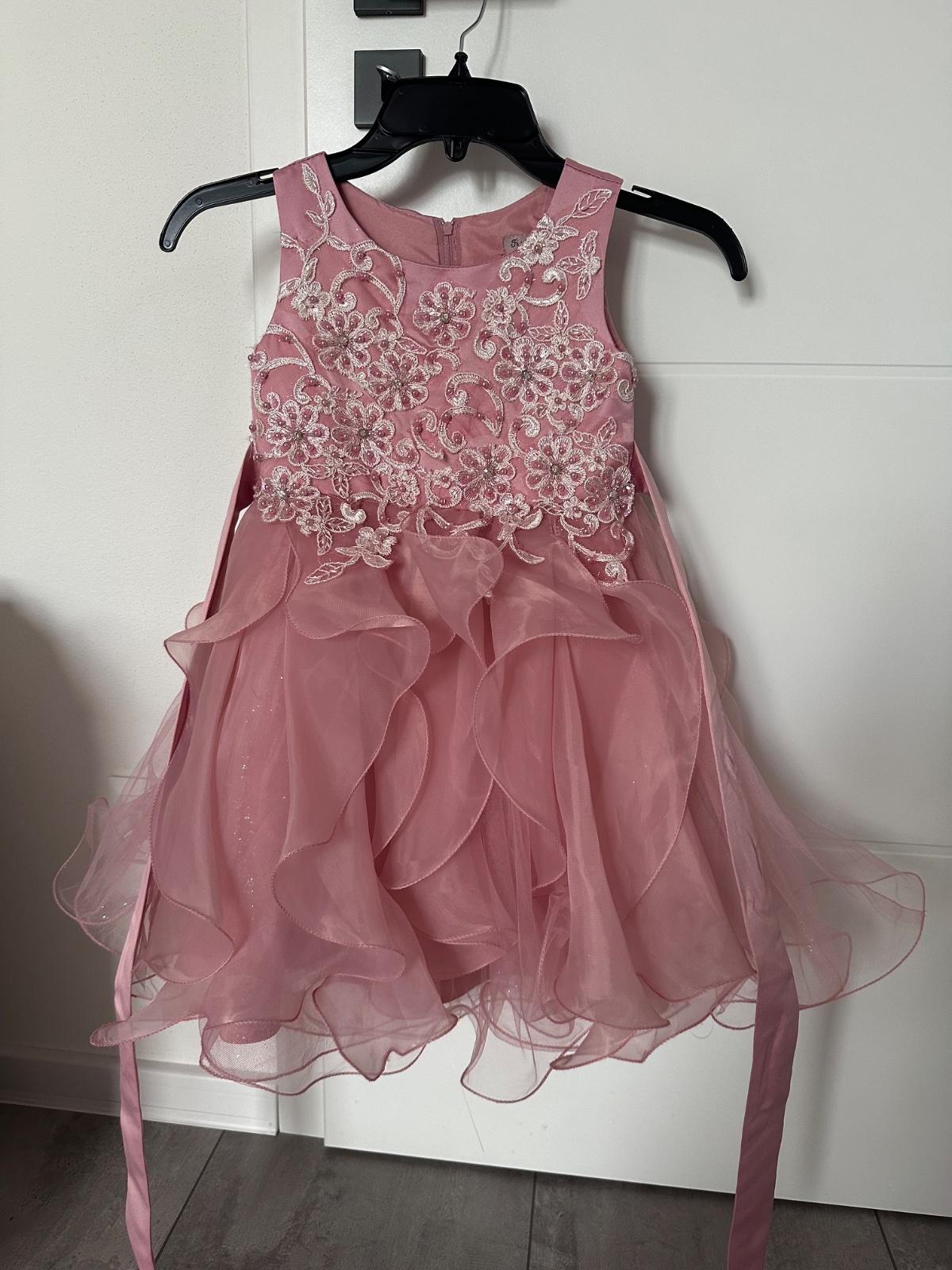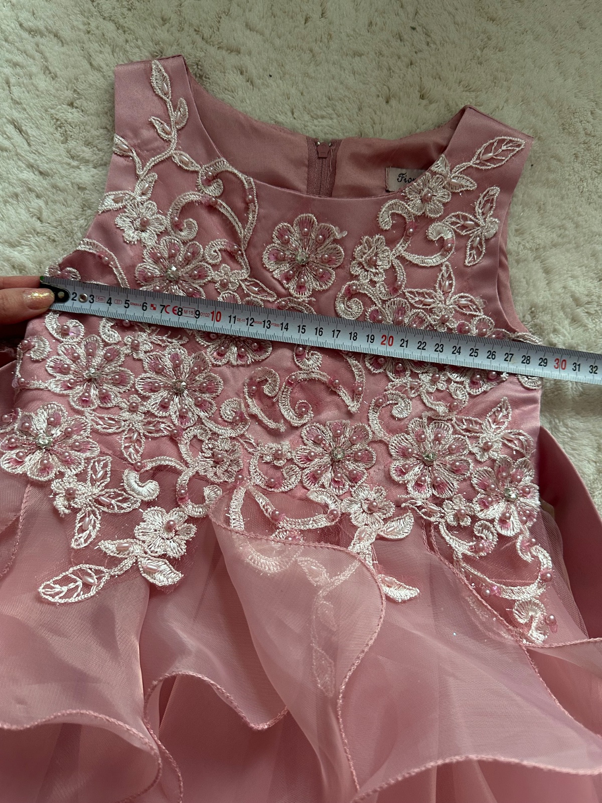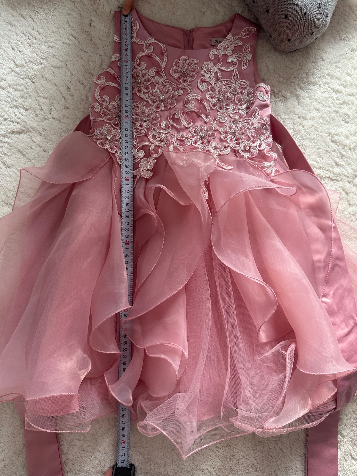 Predám raz oblečené šaty, majú bohatú tylovú sukňu. Je tam uvedená veľkosť 4roky. Aj tak sedia, moja dcéra ich mala oblečené, keď mala presne 4 roky, možno sadnú aj na 104/110.
