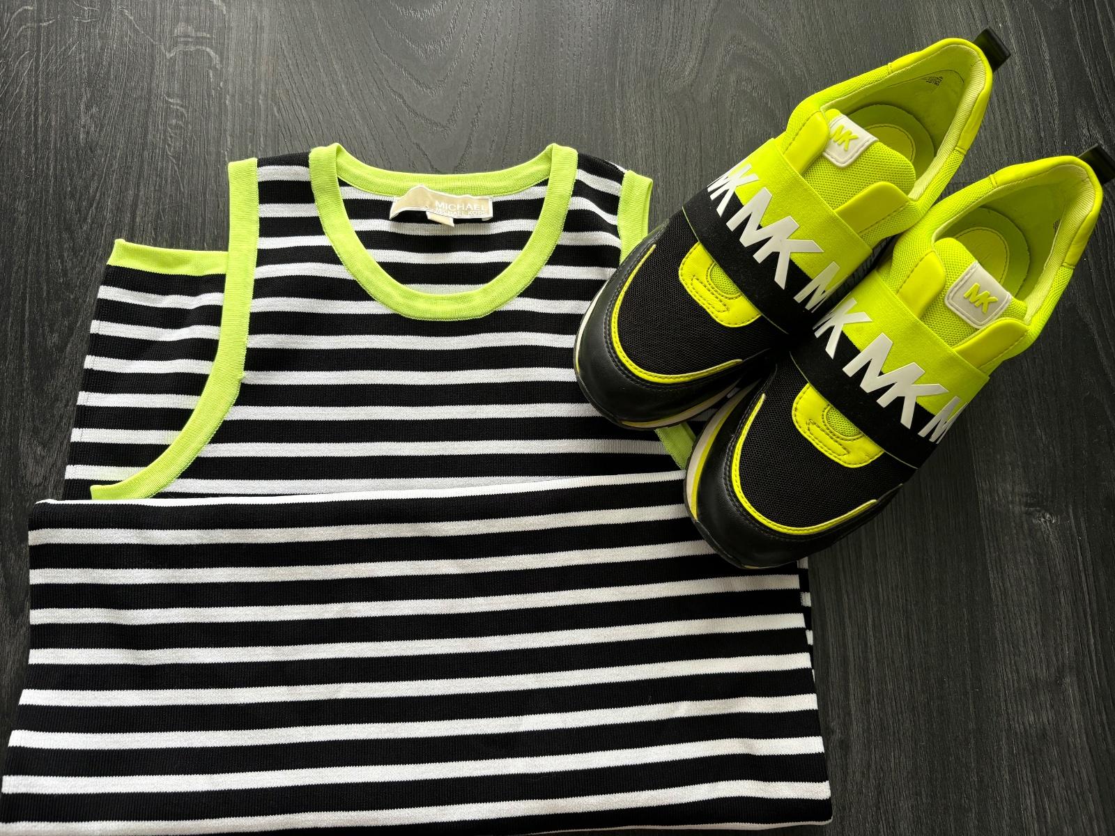 Predám krásne šaty Michael Kors,oblečené asi dvakrát .Sú ako nové,bez poškodenia.Nemám kam vynosiť .Velkosť S - sedí velkostne.Dlžka je zmeraná na foto .Materiál naťahovací,pekne sa prispôsobí každému typu postavy .