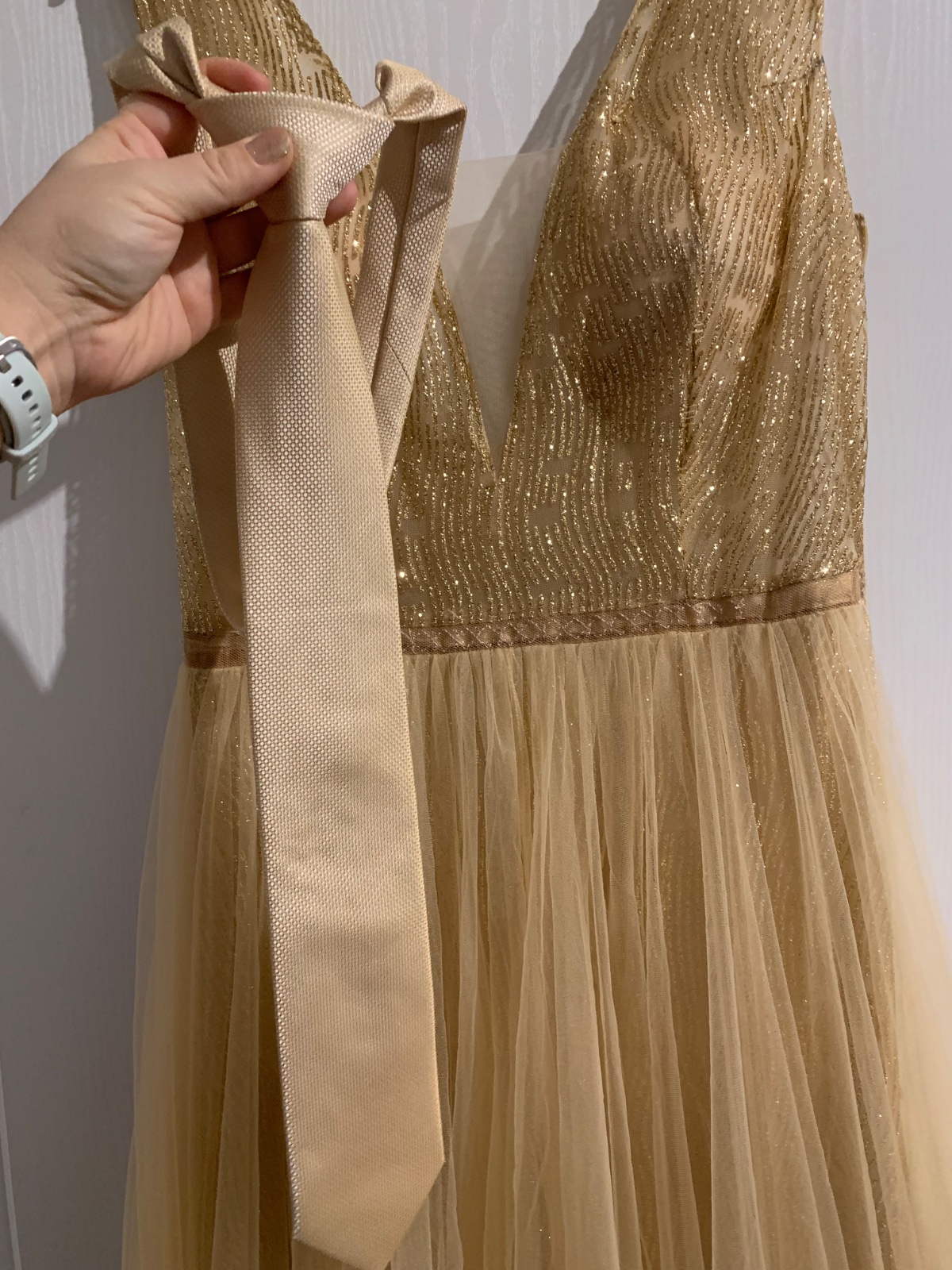 Raz oblečené na plese, krásne trblietavé, majú spodničku, trblietavý stred a na vrchu záclonka 😊 všitá podprsenka, zboku zips. Velkost 38. Pri rýchlom jednaní pošta v cene. Kravata v prípade záujmu +5€