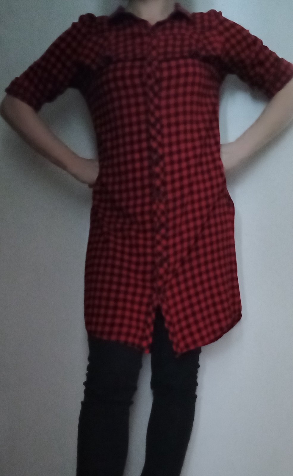 Zaujímavé košeľové šaty, alebo predĺžená košeľa (ako pre koho). Ja som nosila k čiernym legínam. No čierna a červená nie sú farby pre mňa, takže sa ich zriekam...