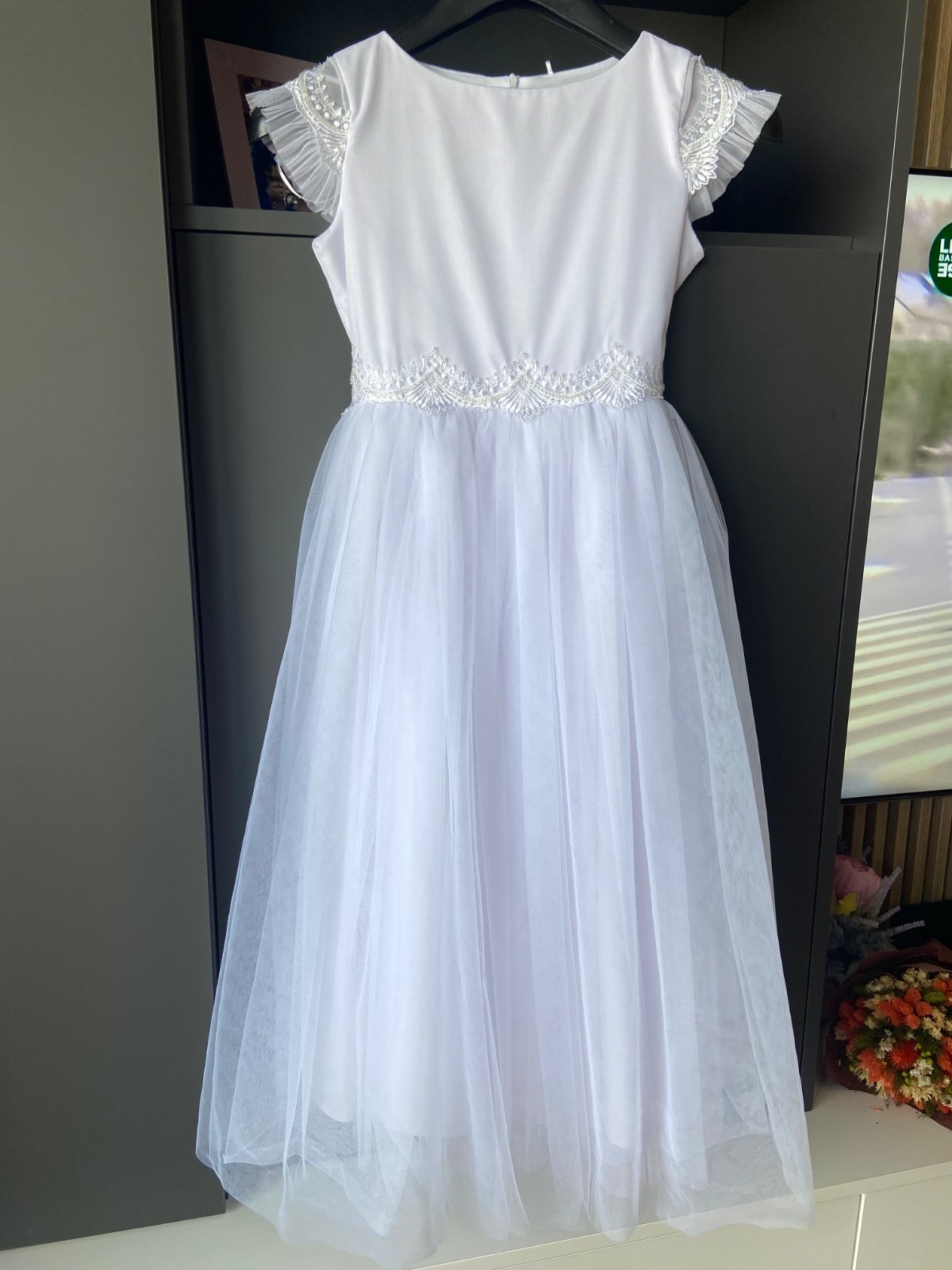 Krásne, elegantné šaty na 1. sväté prijímanie alebo svadbu, bez poškodení, ako nové. Vyrobené v EU, značka SLY. Predajná cena cez 100e.