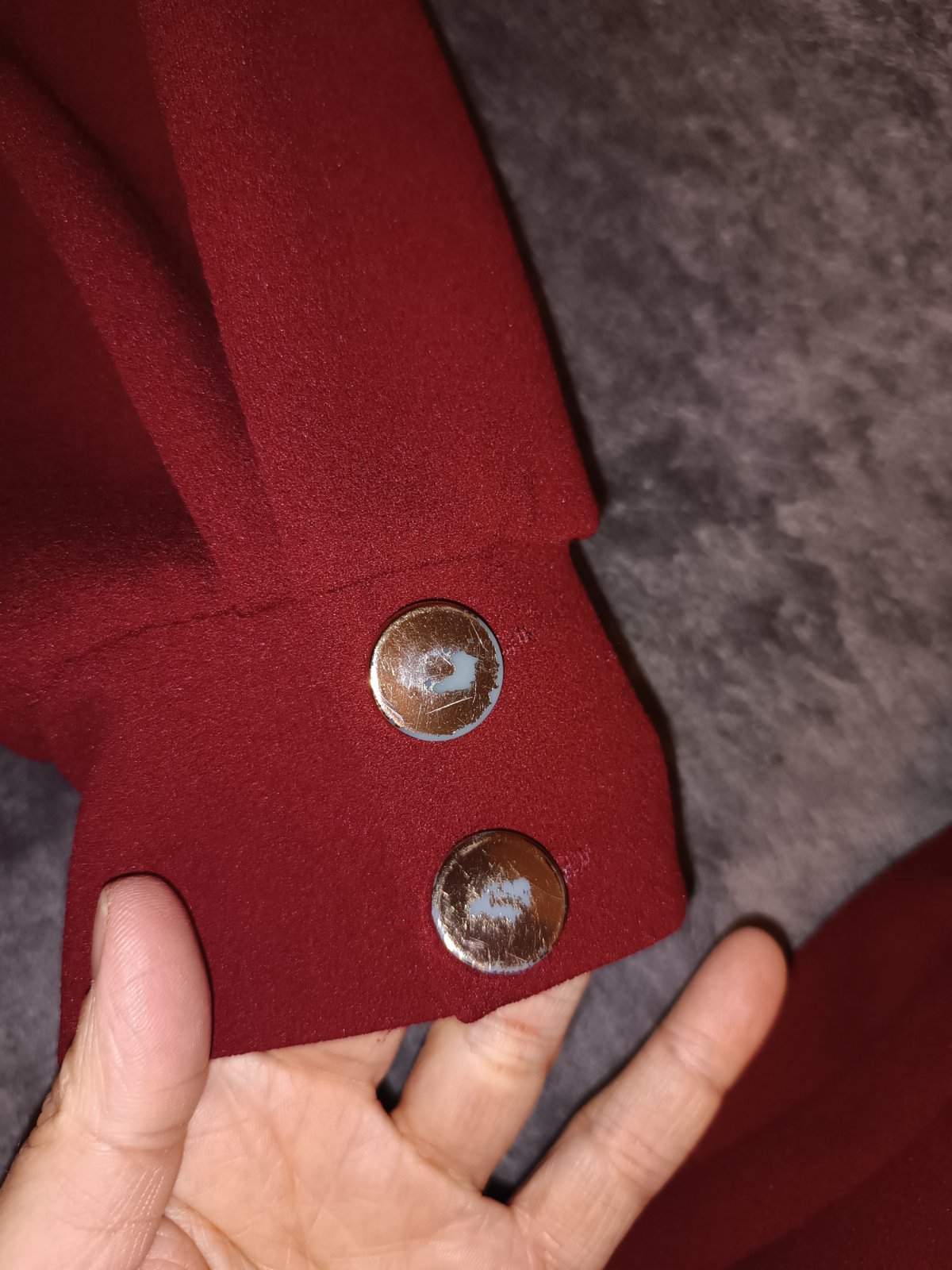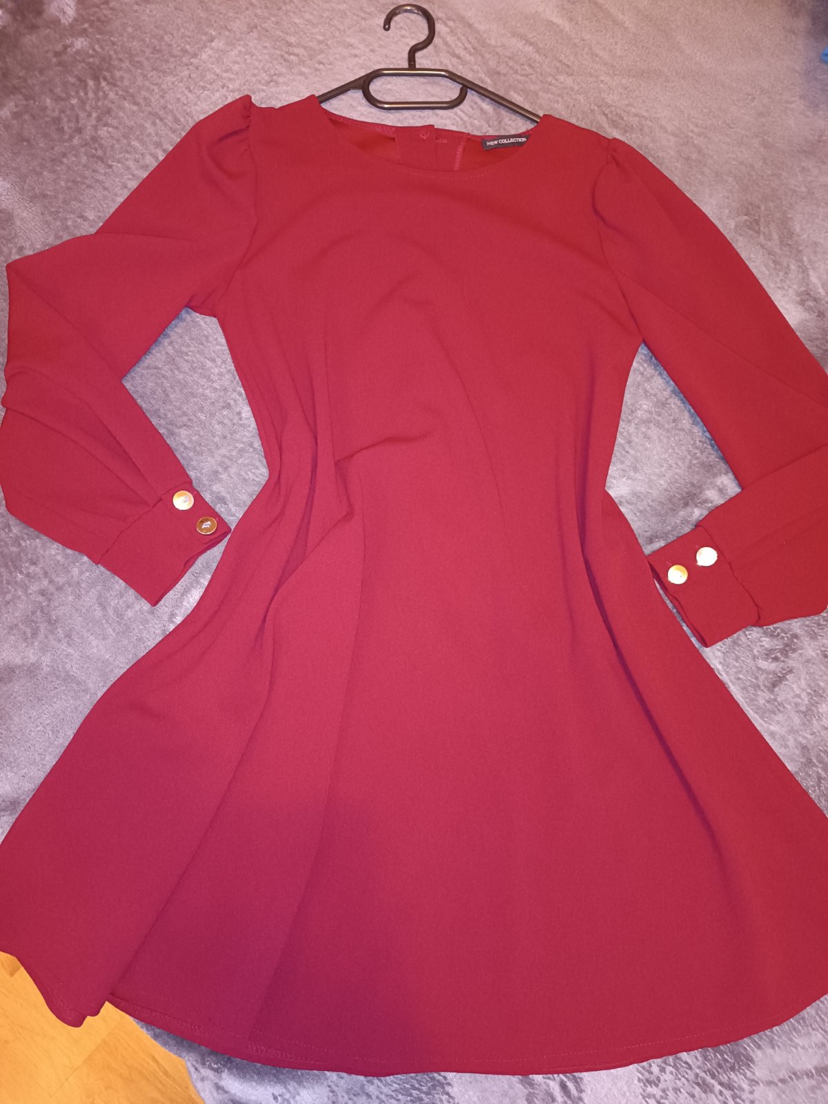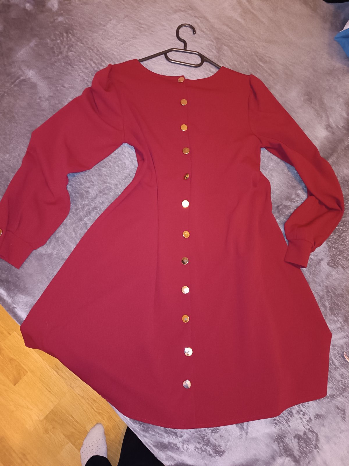Predám bordó šaty zdobené vzadu po celej dĺžke gombíkmi. V. Uni - prsia 47-52x2cm, dĺžka 90cm. Menšia chybička - niektoré gombíky sa mierne lúpu.