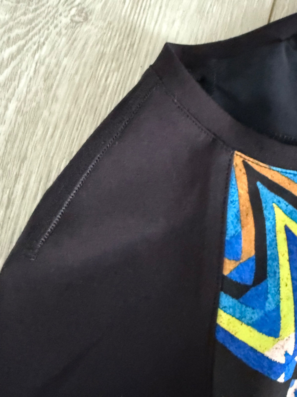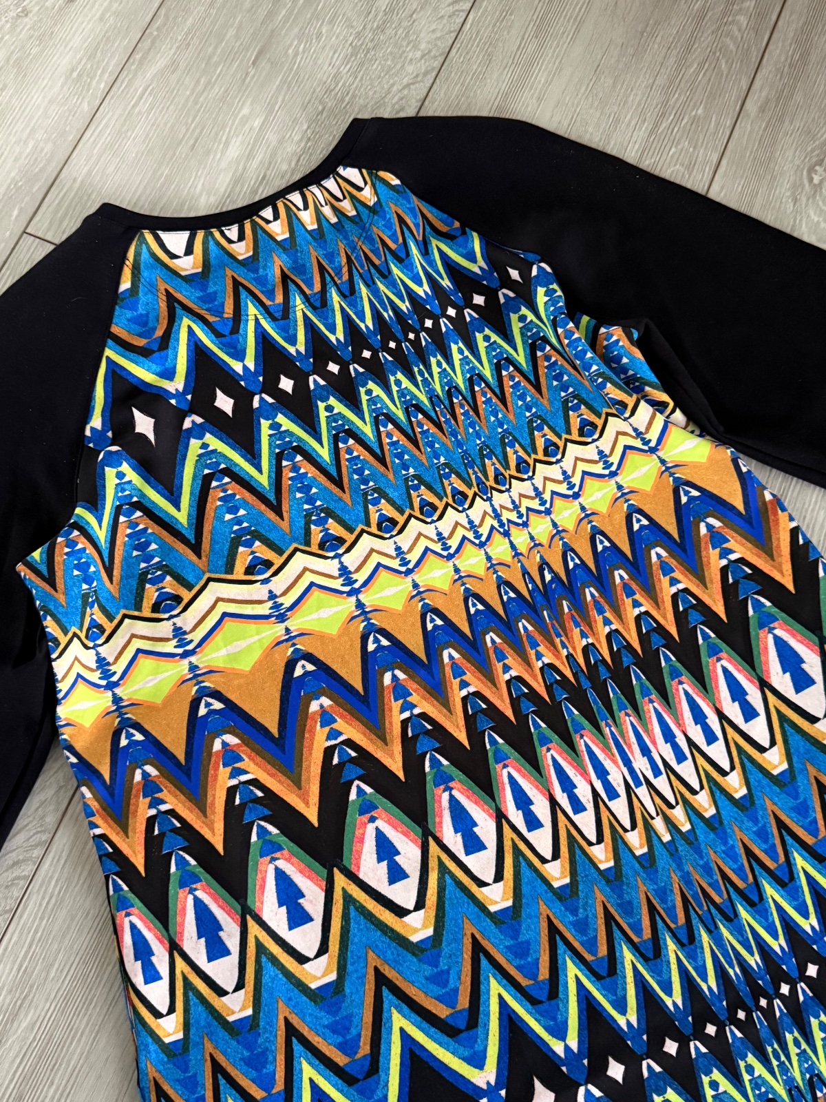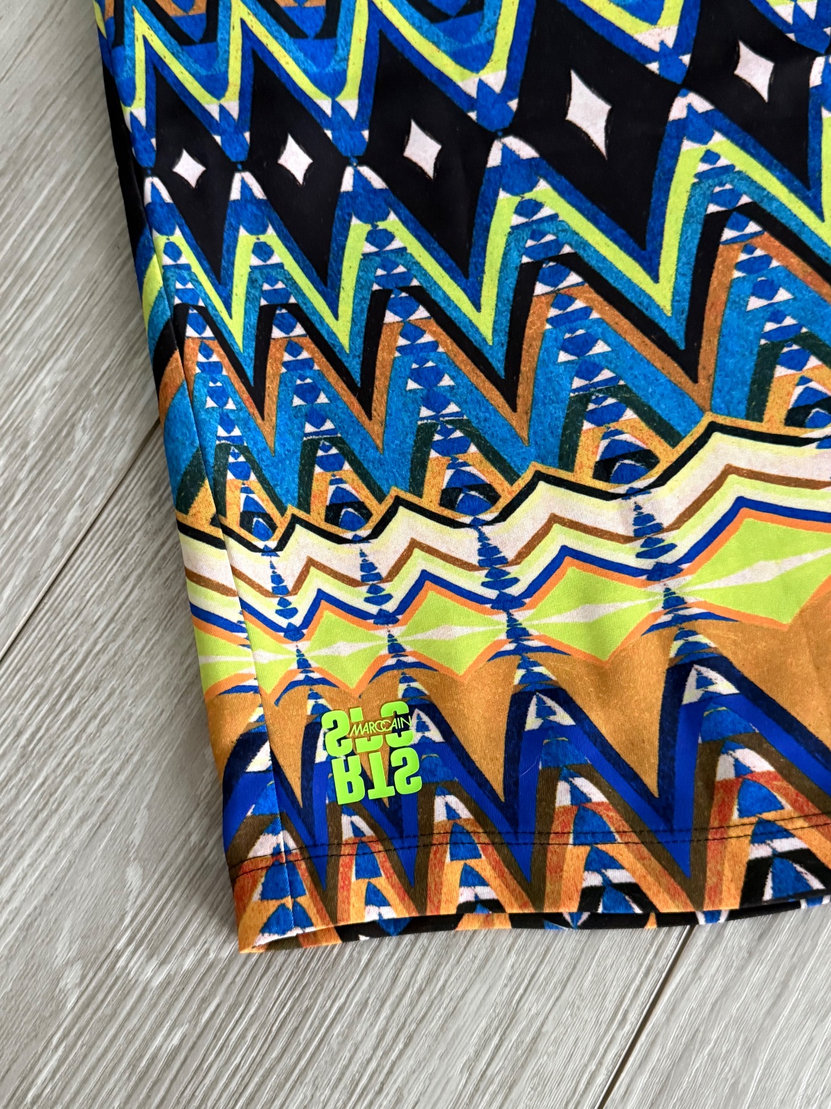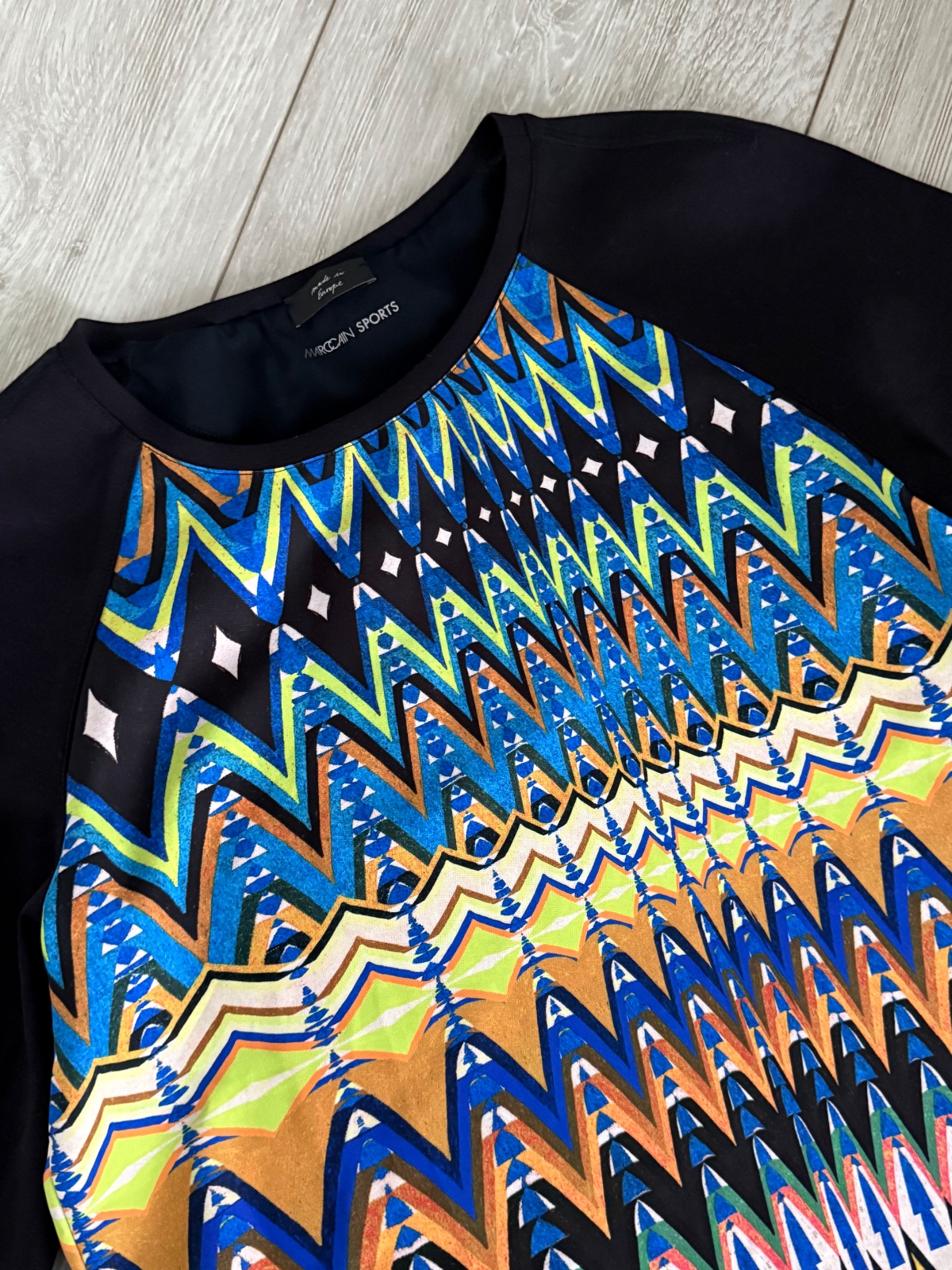 Nádherné farebné mikinové šaty Marc Cain. Po bokoch vrecká. Úžasný materiál na dotyk. Velkosť 2-M. Ako nové. Miery:šírka 52 cm, dĺžka 90 cm.