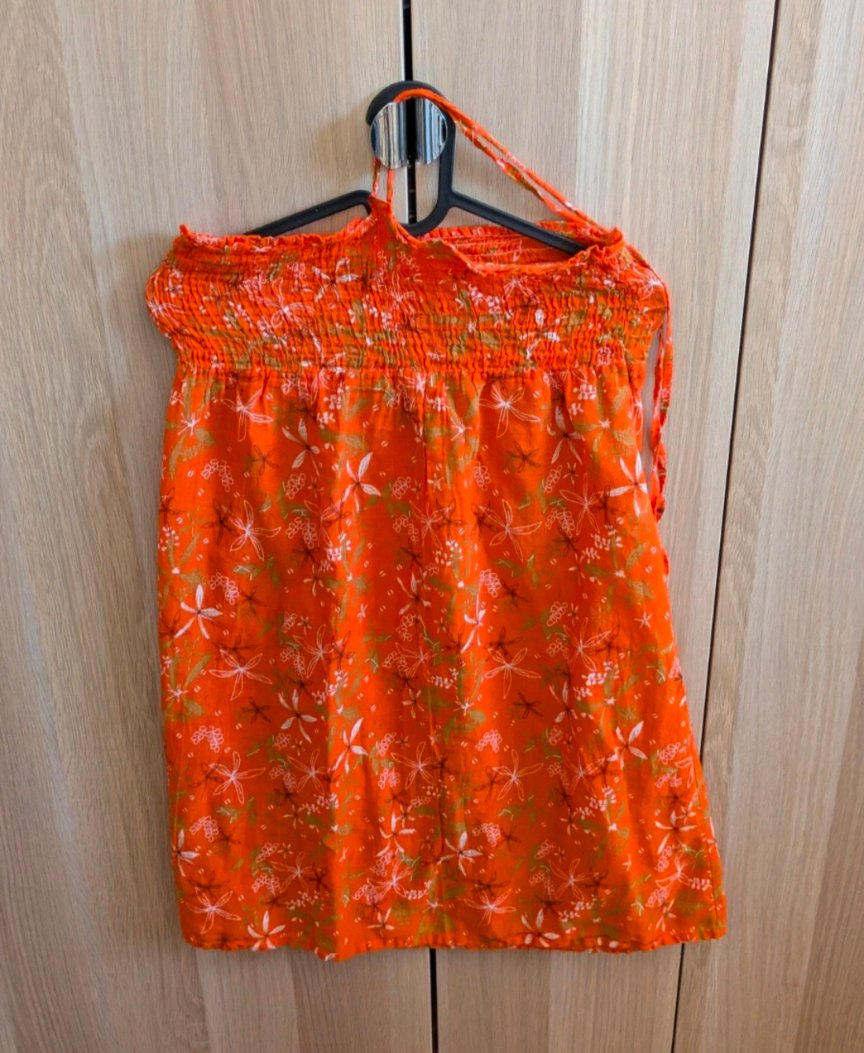 Predám krásne šaty vzdušné super na nosenie okolo krku sa zaväzuje šnúrka možnosť nosiť aj bez zavazovania iba po prsia je tam gumička cez prsia bez dier a fľakov 100%ba šírka cez pás 2x 50cm celková dĺžka 74cm