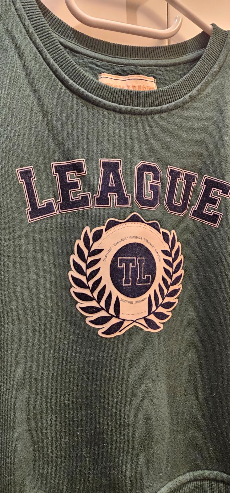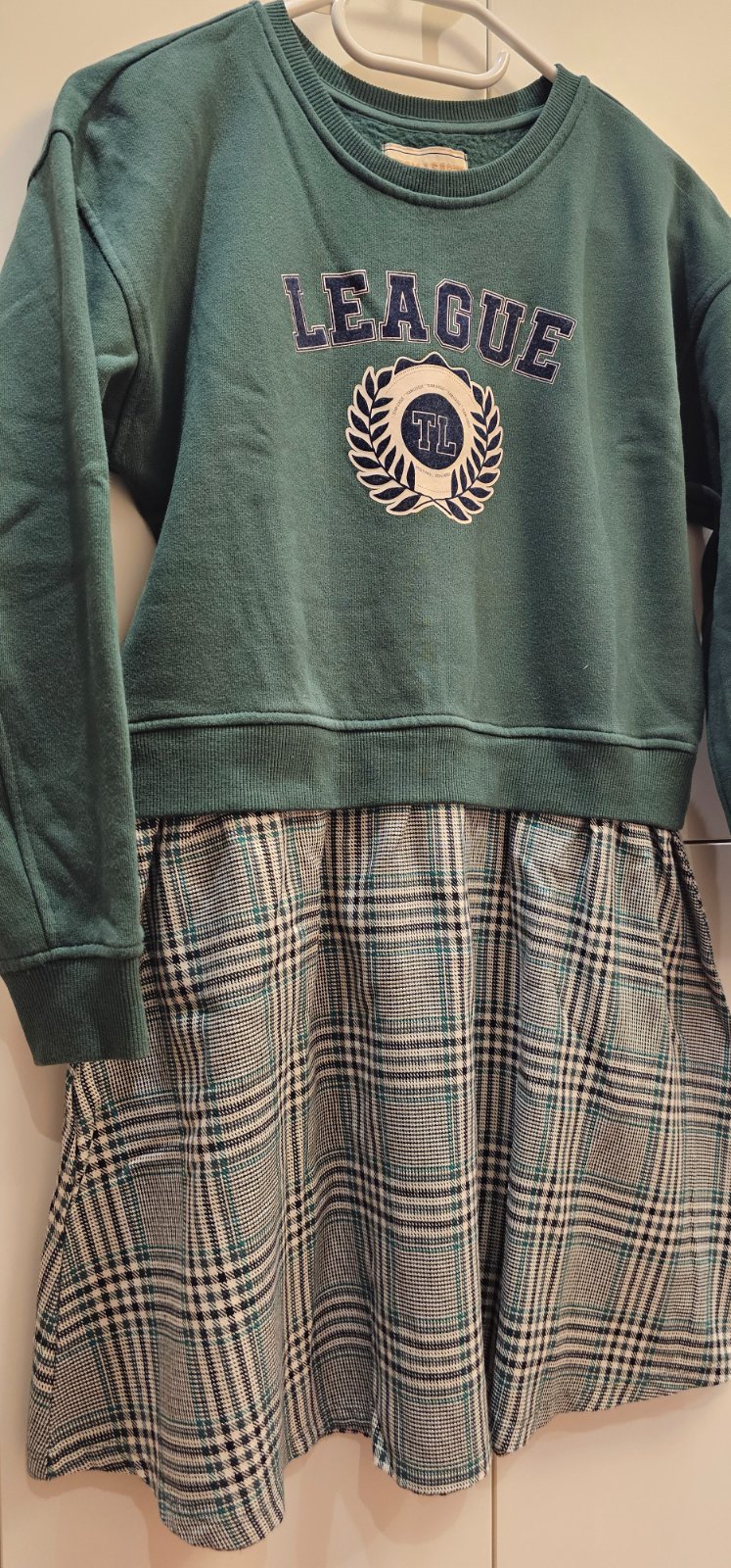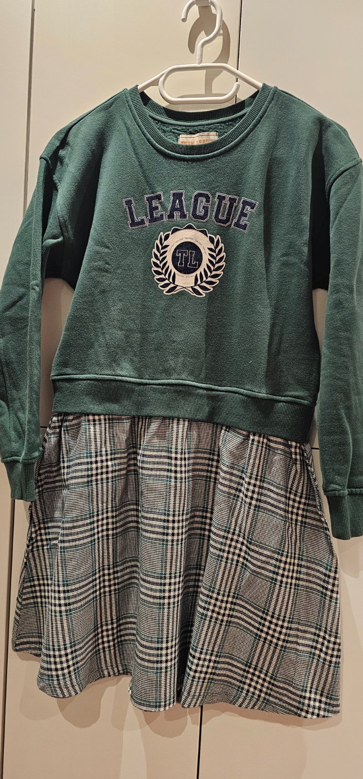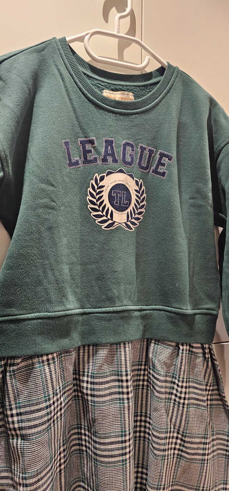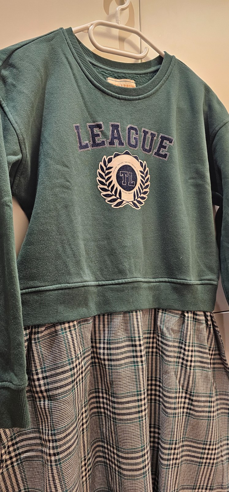 Pohodlné šaty v univerzitnom štýle. Mikina je zateplená. Farba tmavo-zelená, v skutočnosti krajšia a sýtejšia než na fotkách. Ako nová, bez poškodenia.