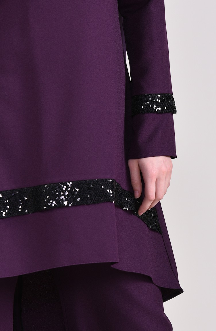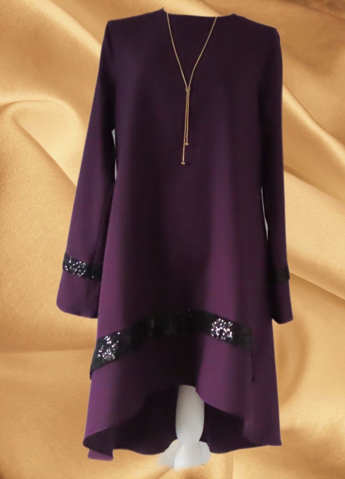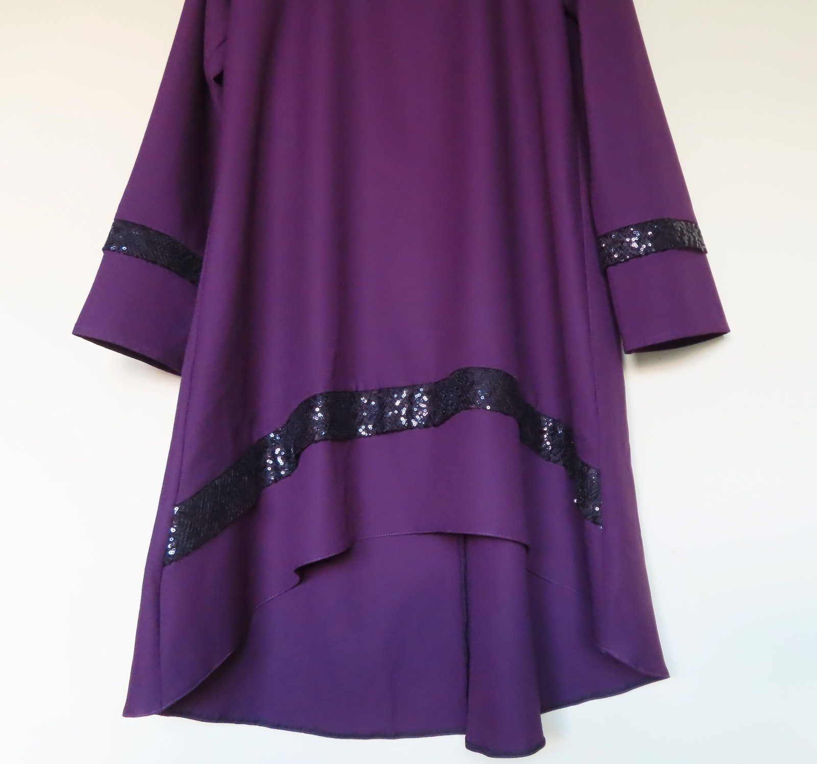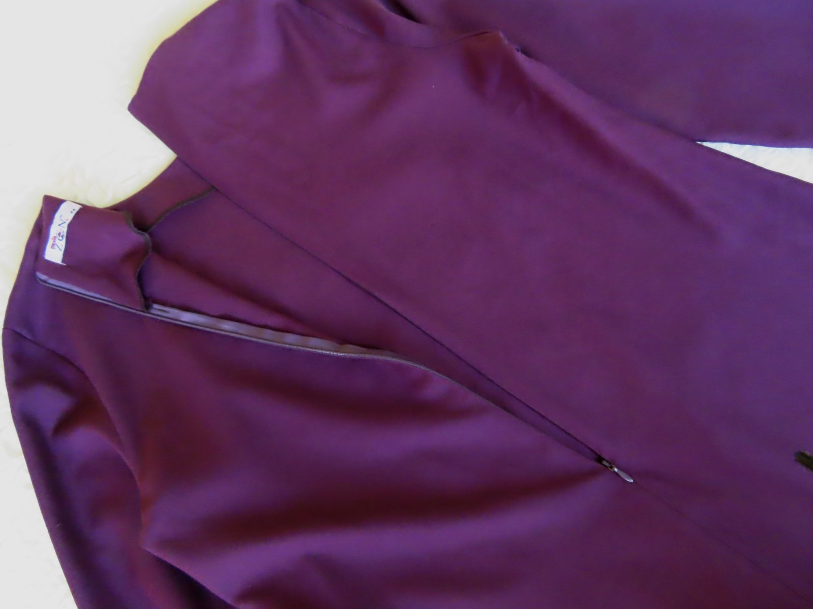 Šaty tmavo fialovej farby. Zapínanie vzadu na dlhý zips.