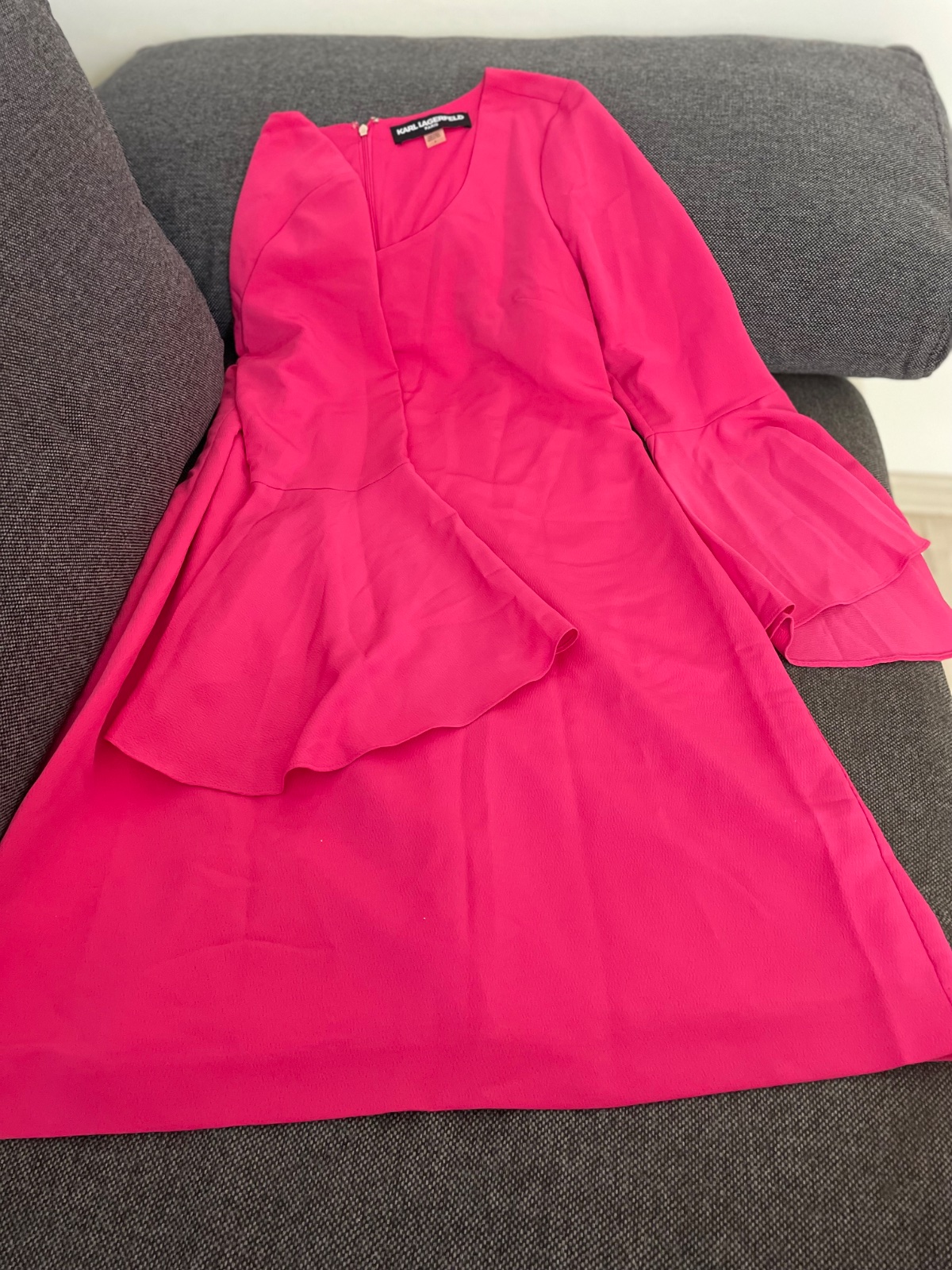 Saténové šaty jednoduché Áčkového strihu, na rukávoch viazanie na mašlu ...raz vzaté... Šírka v podpazuší...je 49 cm Dĺžka od ramena je 84 cm