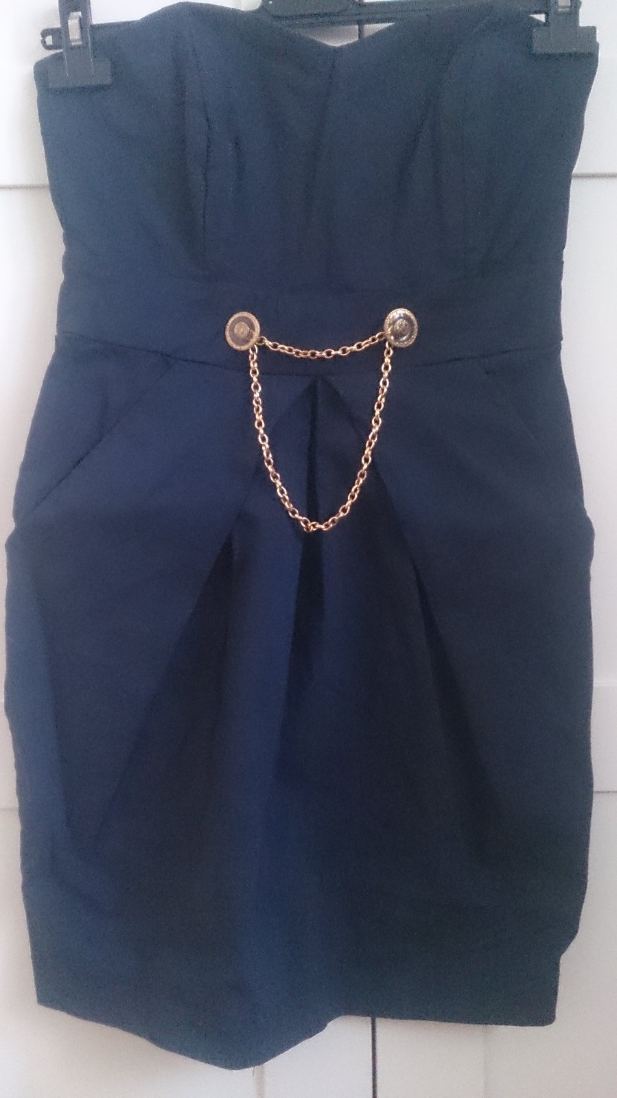 korzetove saty s vystuzenou podprsenkou, bez poskodeni, po bokoch vsite moderne vrecka, je to elasticky material, tak okolo hrude povolia este par cm a pekne obopnu, velkost M/L