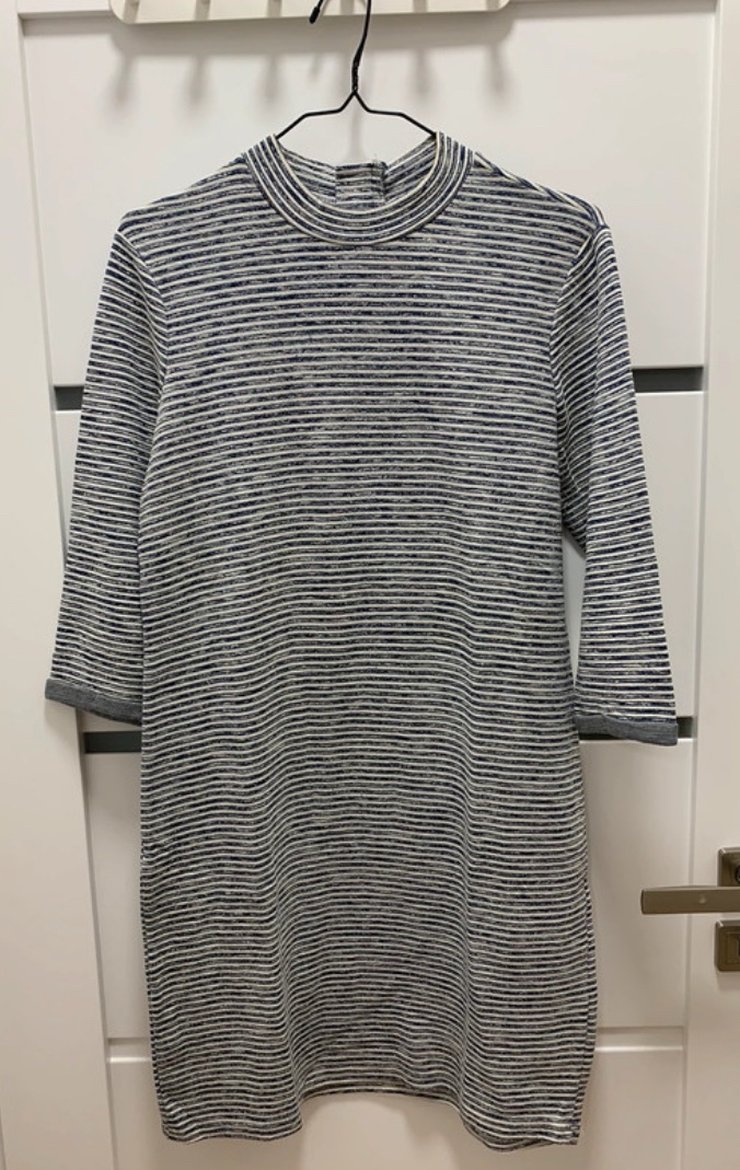Pásikavé šaty z jemného úpletu, 3/4 rukáv, stojačik, zo zipsom na chrbte značky Pepco.