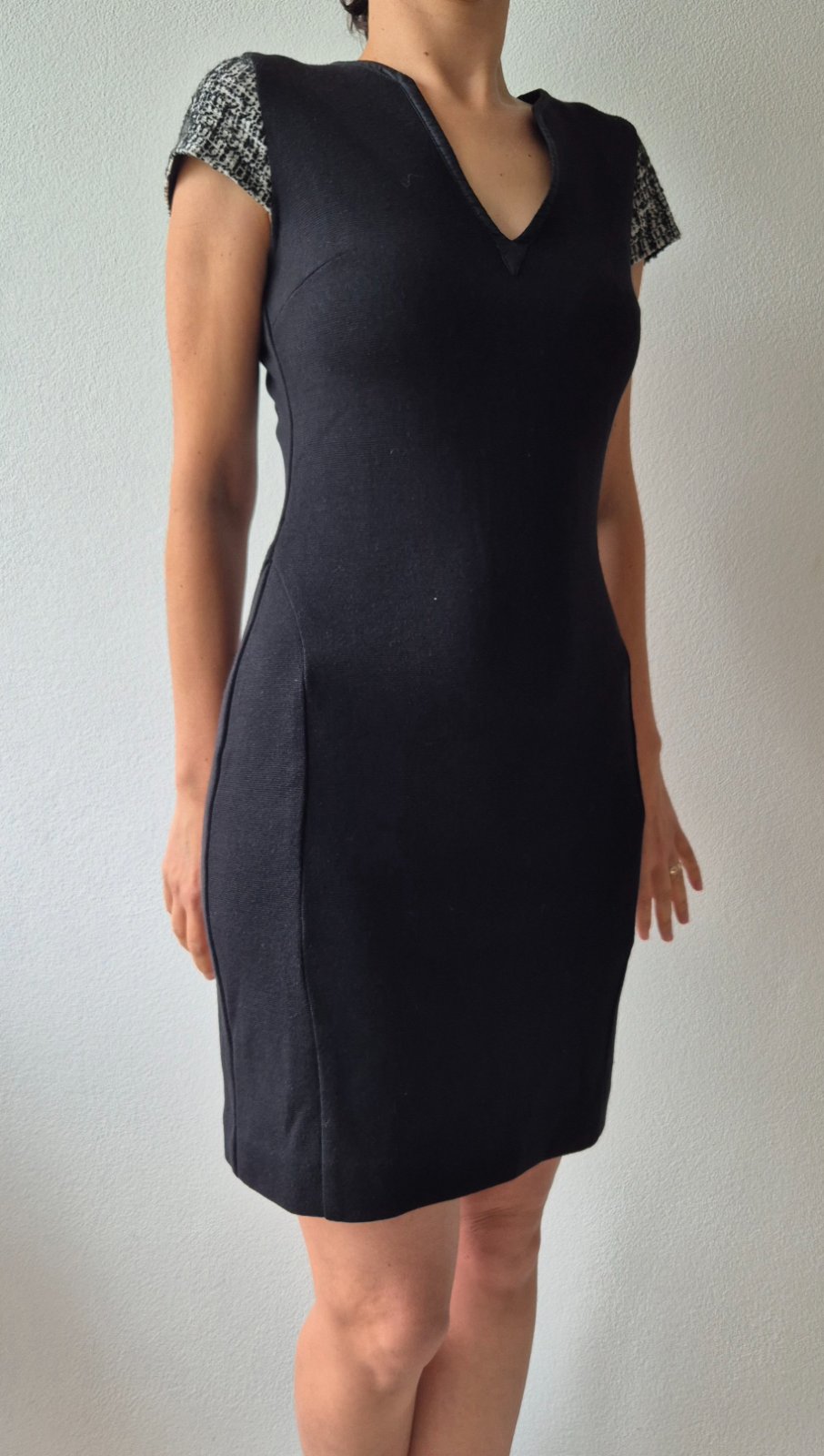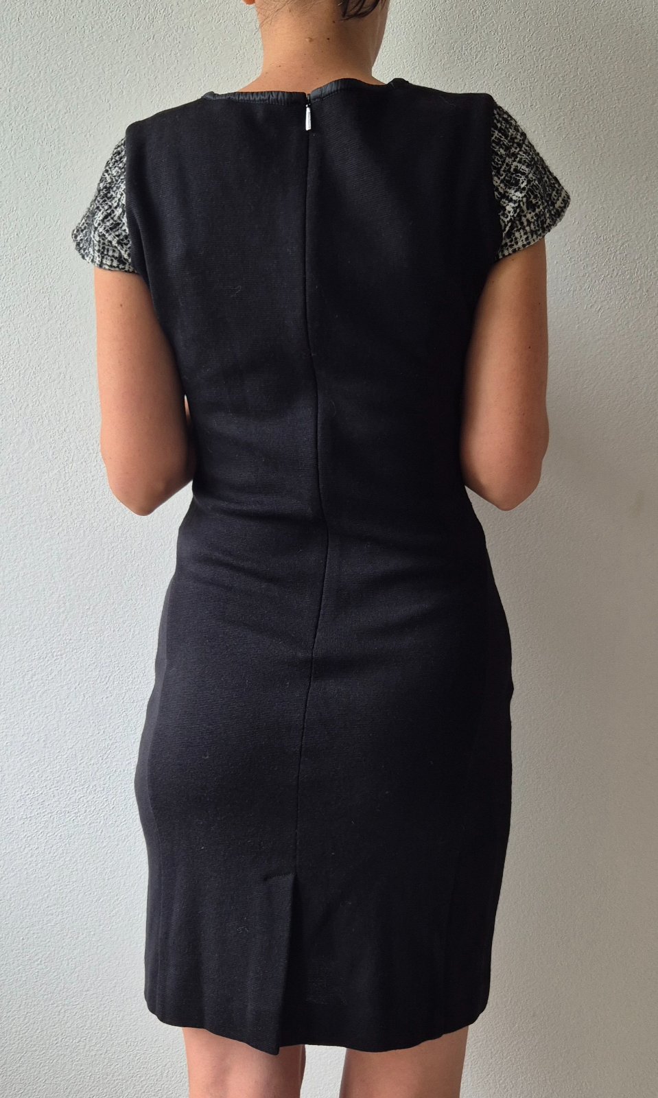 Nádherné šaty francúzskej značky Cerruti 1881 so skvelým zložením (50%vlna). Dĺžka nad kolená. Rukávy inej farby a látky,čo dodáva krásny vzhľad, výstrih je tiež veľmi zaujimavy a krasne sedí. Vzadu na zips. Top stav. Nosené minimálne.