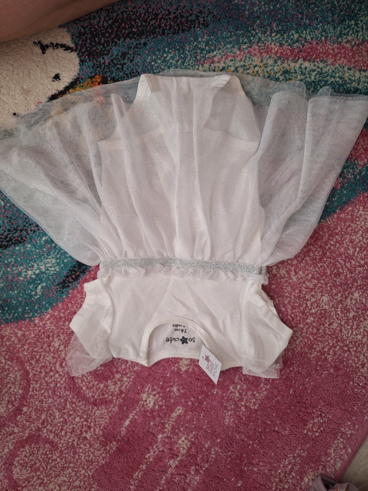 Biele oblecene raz, ruzove nenosene. Pise velkost 80, no sedi skor na 74. Top stave. 4e/kus Spolu 7 eur.