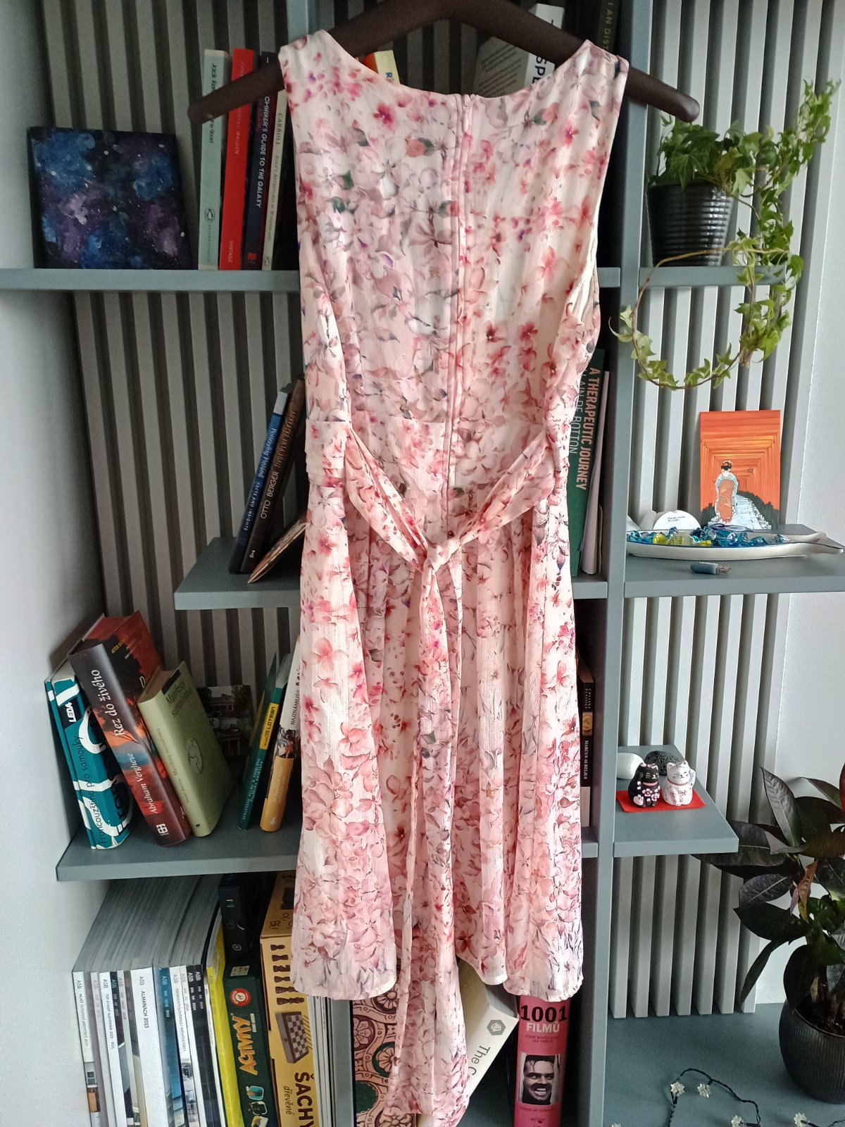 Nádherné kvetinové šaty Orsay, nosené veľmi príležitostne, bez vád, a síce by som si ich rada nechala na ďalšie príležitostné nosenie, sú mi už malé. Zozadu sa zapínajú na zips, nie sú elastické, majú bielu podšívku, takže nepresvitajú. Veľ. M, dĺžka 95 cm, cez prsia 45 cm, pás aj boky voľné. Majú aj mašlu na zaväzovanie, ale tá je len ozdobná.