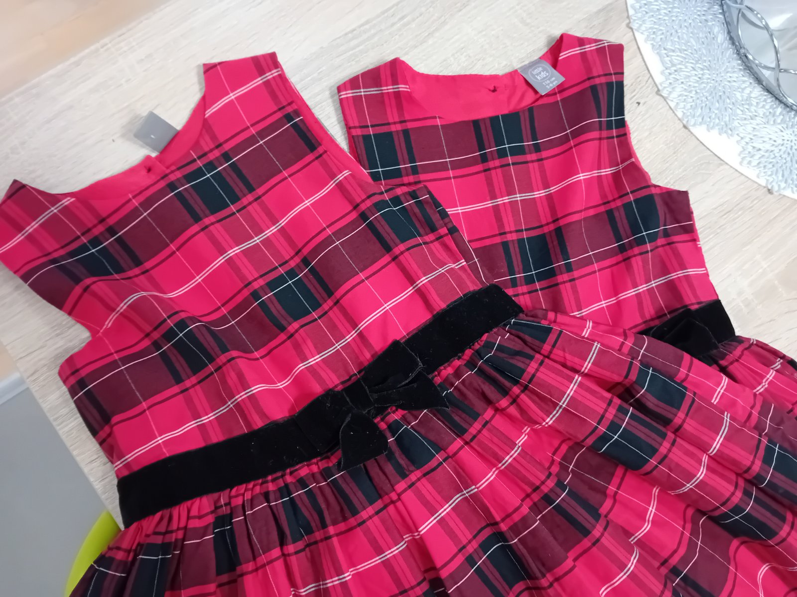 Krásne, zachovalé satocky pre sestričky, vhodné ako v lete, tak aj v zime. Niesu hrubé. Mam dva kusy, jedny 116, druhé 128. Nosili sme príležitostne, keďže ja červenú farbu nemusím. Zapínanie vzadu na gombíky. Nemajú žiadne poškodenia. Cena za jedny 8€, spolu 15