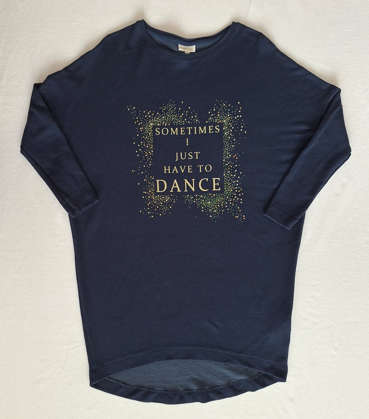 Veľkosť je dvojčíslo 146 - 152; šaty majú dĺžku 79 cm.