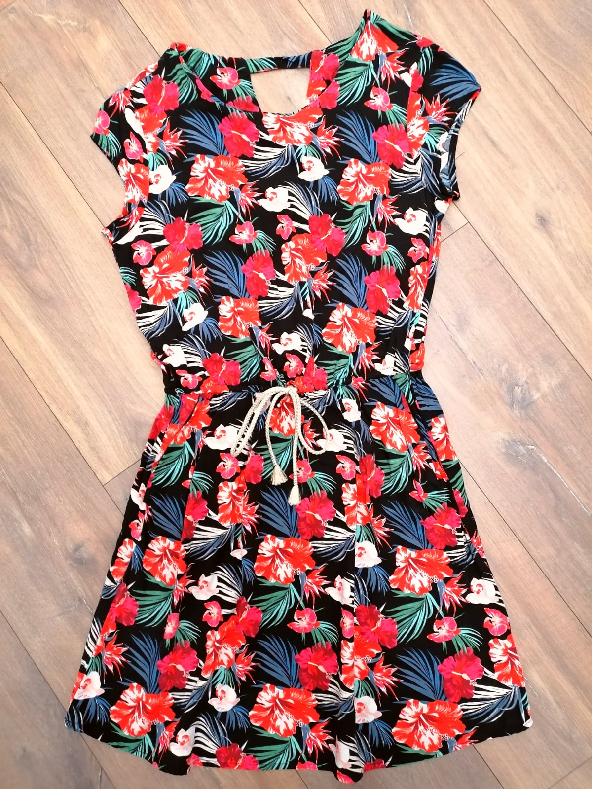 Nádherné ľahké letné šaty, v páse majú zlatú šnúrku na stiahnutie,pekne tvarujú postavu.Maju aj vrecka. Bez poškodení. Dĺžka 93 cm, šírka v prsiach 46 cm.