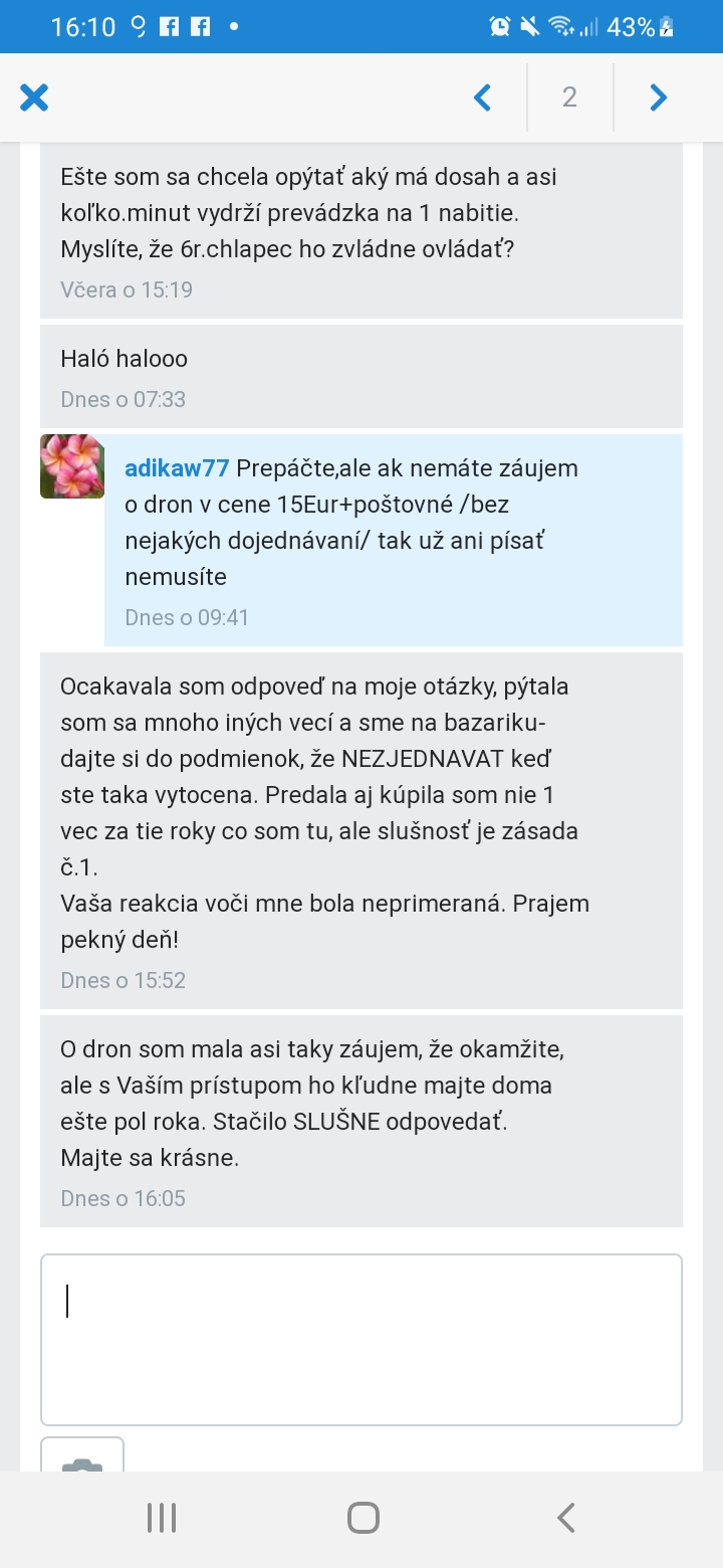 Nech sa jej napriek tomu darí, neželam nič zlé, prave naopak, no ozaj do buducna trosku brzdiť svoje reakcie. Alebo si dat do podmienok veľkým,ze NEZJEDNAVAT!!! Koniec koncov toto je bazár a na bazáre sa zjednavalo odjakziva 😉