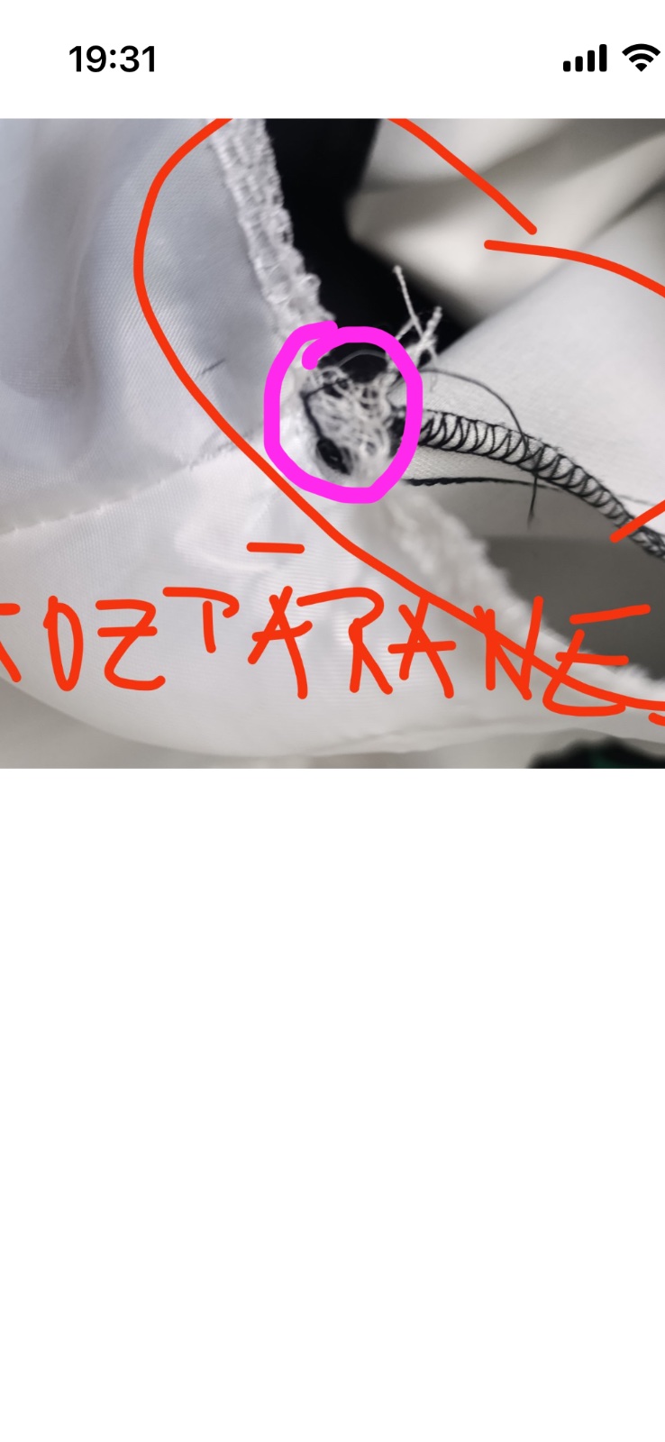 Milá pani, zamotala ste to všetko trošku inak aj ste si to troska vylepšili v svoj prospech ale chápem… Krásne sako v top stave. Zalomené rukávy a zvnútra prichytené nitkou sú bežne na drahých veciach kôli tomu aby si mohol každý upravit aj sám podľa dlzky ruk… dierka vo vnútri na podšivka nieje ako ste vy označili na foto ale to maličké čo som ja označila ružovou farbou na foto. Neviem aký máte dôvod ale pravdivý, že chcete sako vrátiť, či to nieje náhodou aj to,že je vám male lebo sedi skôr na veľkosť S , preto som maká uvedené aj miery a to vaše,čo ste mi odfotili máte na štítku M… no neviem. Len teda kôli tomu vyhrážaniu a ostatnému,čo ste mi popísali,si ho rovno nechajte. A to som mala najprv záujem o vrátenie. Mrzi ma že ste nespokojna. Nakupujete ale radšej v kamenných obchodoch.Všetko dobre prajem.