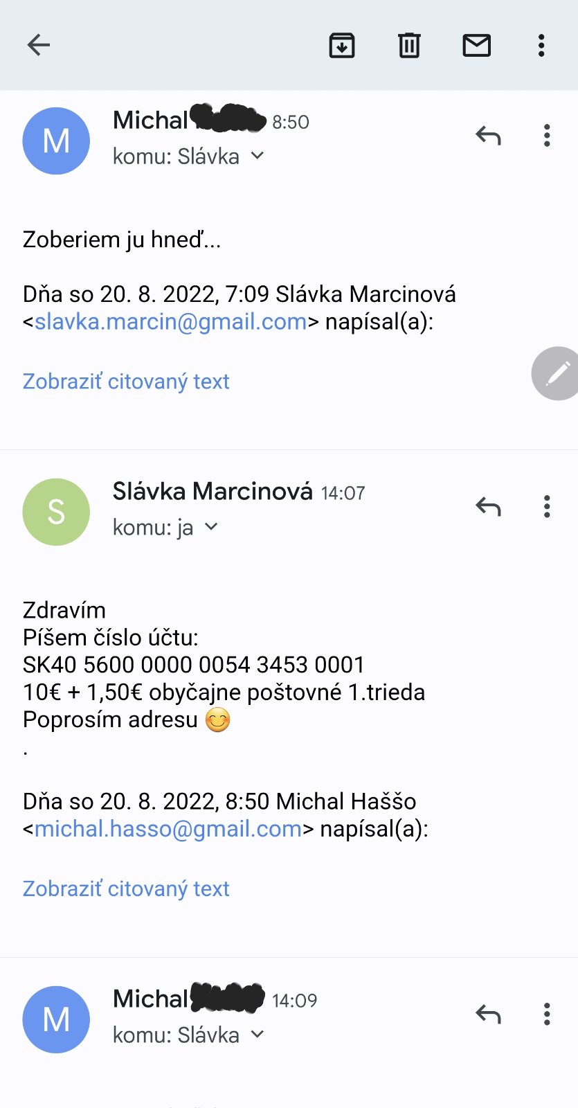 Pani zavadza na mail mi poslala spravu ze je kniha ktoru predava obsadena a tu na konikovi mi napisala ze je volna jedna foto produktu peniaze na ucet chce popredu a ked odpise za pol dna ked som si knihu objednal inde tak napise ze mate divne spravanie....nedoporucujem smrdi to zavadzanim a mozno aj podvodom..