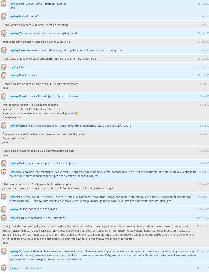 Špekulantka ste, najprv ste mikinu nenavliekla, potom vám bola ledva pod prsia nakoniec to nebola mikina ale tričko, no to dieťa by muselo byť také aspoň 70kg aby ju nenavlieklo. Ja by som vám ani nič nepredala a nemusíte sa tváriť že mi mikinu idete poslať nazad. By som ju ani nevzala 🤔