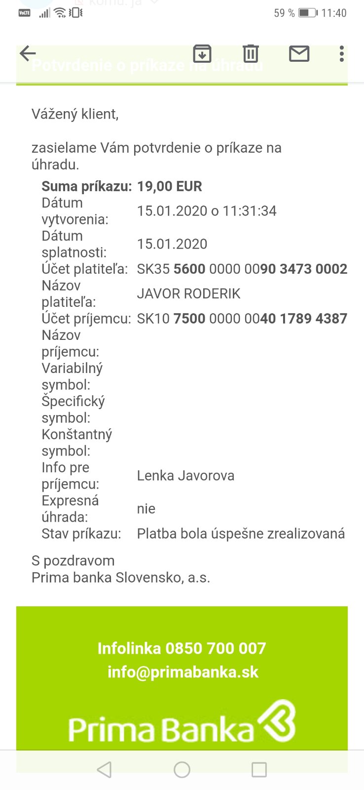 Všetko v najlepšom poriadku. Ďakujem a odporúčam.
