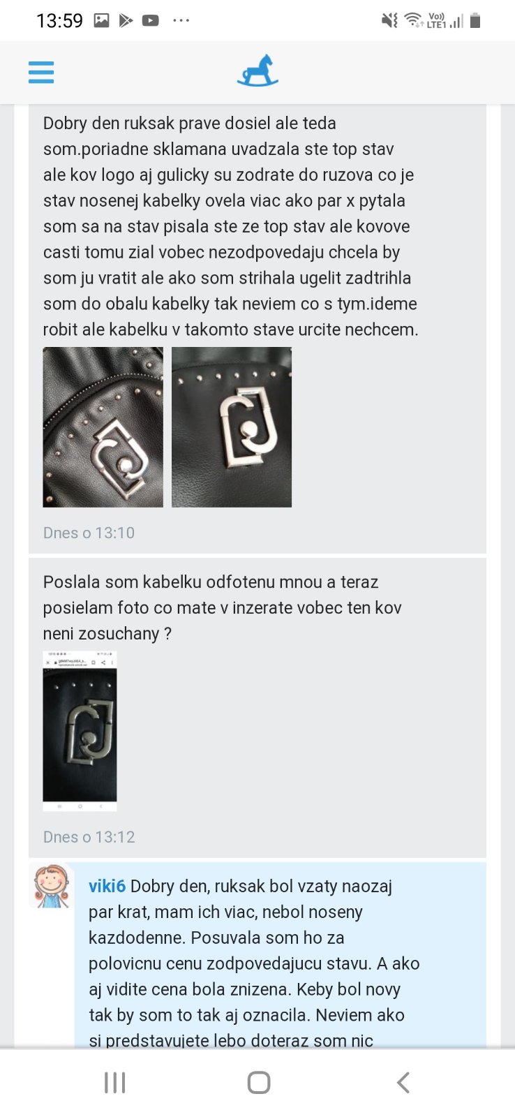Neviem ci ma vobec vyznam sa k tomuto vyjadrovat a uprimne ma mrzi Vas styl jednania pretoze som 2 tyzdne cakala a stale ste si nieco vymysleli.Akceptovala som vsetky vase poziadavky, dolozila fotky ale asi ste si pomylili obchod s novym tovarom a bazar.Pisete ze nenosite obnosene tasky ale v inzerate nebolo spomenute ze je ruksak novy a ani na cenu ste sa vtedy nepytali.Nebudem zverejnovat komunikaciu, len este doplnim co ste zabudli napisat ze ste pri otvarani do nej zastrihla a teraz ju chcete vratit.Fotky boli aktualne a cena zodpovedala stavu.Bola by som rada keby ste napisali aspon pravdu ked mi davate negativne hodnotenie, ktore som este do dnesneho dna nemala.Stale sa snazim veci vyriesit k spokojnosti ale Vy ste hned utocili a podozrievali ma. Nebudem Vam pisat hodnotenie ani Vas urazat nie je to moj sposob komunikacie.