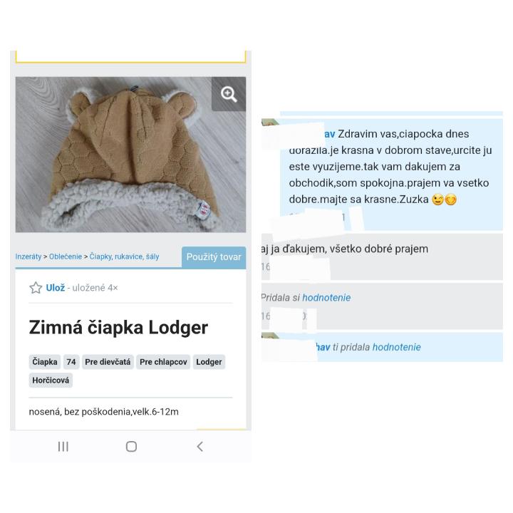 Predavajucu absolutne neodporucam!!!!!!,poslala mi ciapku Lodger inej velkosti ako bolo v popise,omnoho mensiu,kedze sami Lodger ciapky nosime a poznam tu znacku a velkost ciapiek ako sedia tak som presne vedela ktoru velkost potrebujem,nasa Nam bola uz mala a potrebovala som vacsiu velkost ktoru ona mala v popise ktory bol chybny,samozrejme je Nam mala,presne tu velkost uz mame doma,aj som jej to pofotila na dokaz a poslala,bez reakcie, ,zmazala inzerat ale na koniku je aktivna teda ma jednoducho odignorovala.
