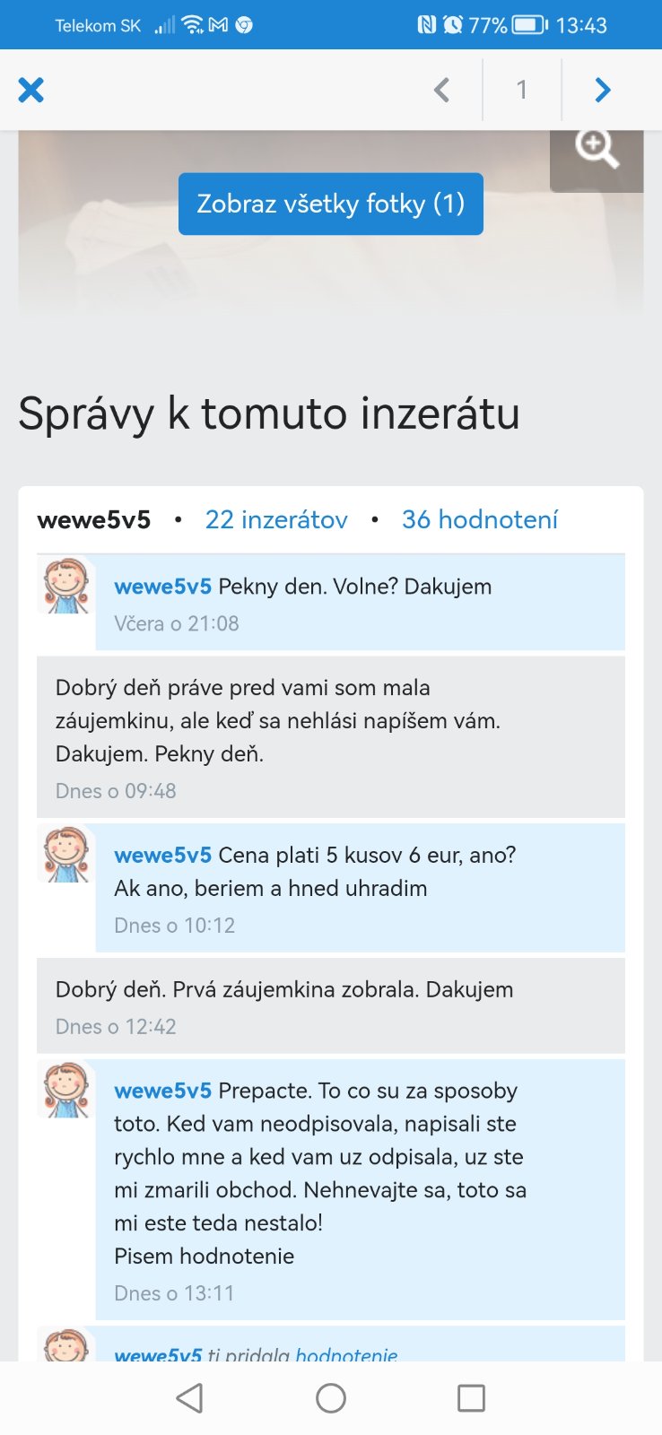 Pani neodporucam. Prejavila som zaujem o inzerat, pani odpisala, ze zaujemkyna oredo mnou neodpisuje, tak posuva tovar mne. Napisala som, ze tovar beriem. Ked sa prva zaujemkyna zrazu ozvala, pani mi obchod zmarila.