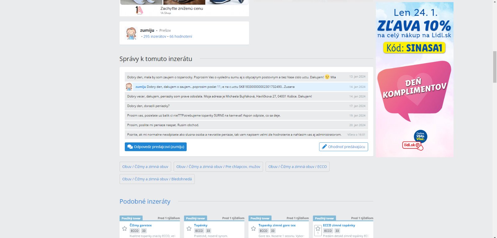 Tyzden so mnou predavajuca nekomunikuje 😞. Peniaze za tovar som odoslala. Tovar nemam.