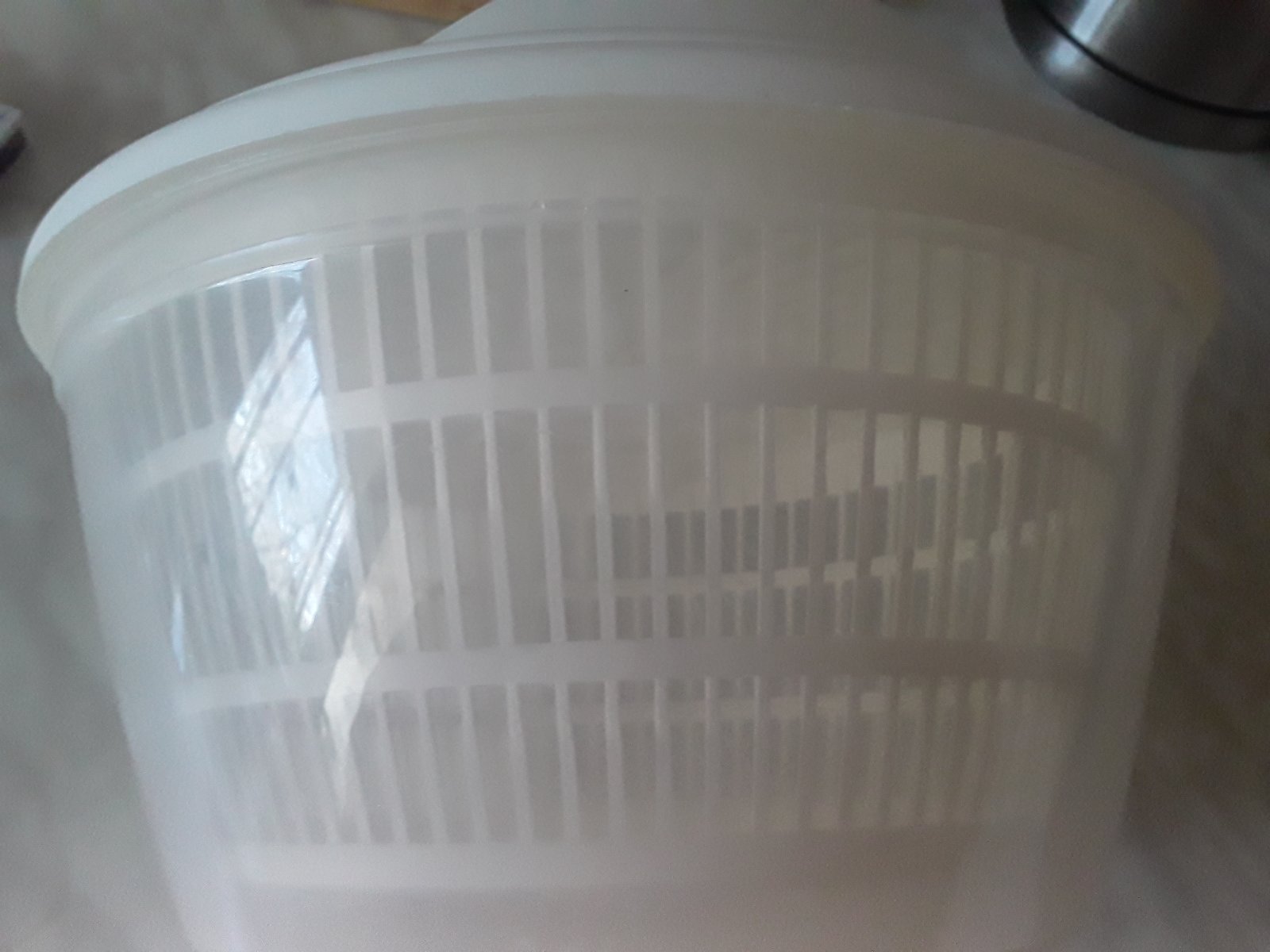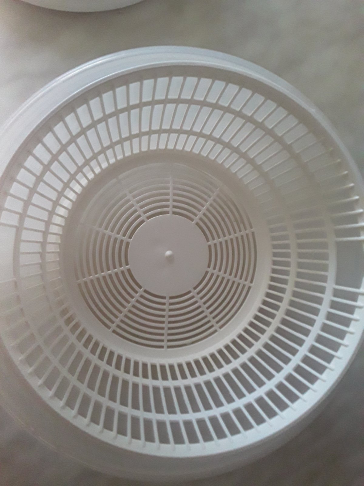 so šalátovým karuselom vzducho a vodotesný uzáver. Objem cca 3 l, bielej farby