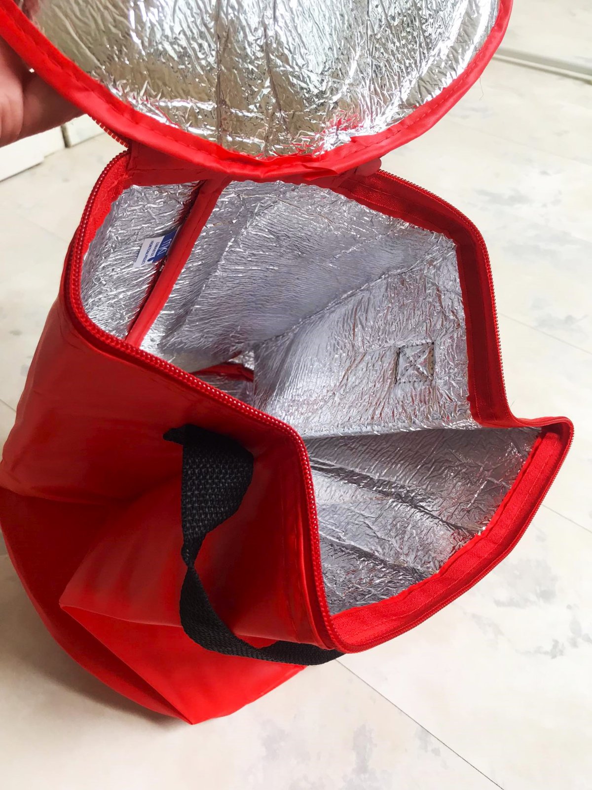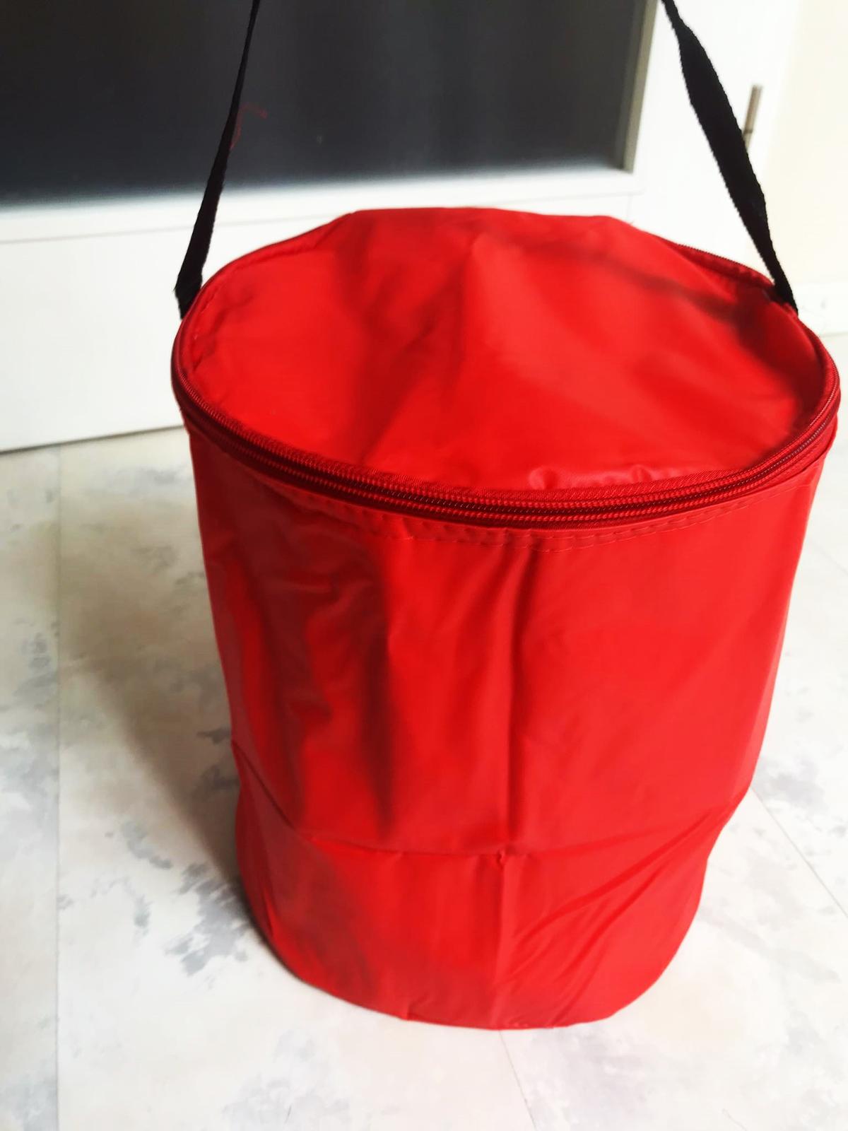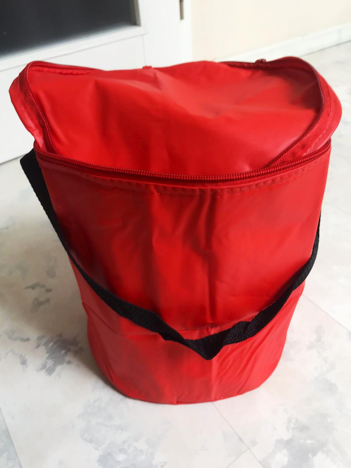 kvalitná termo taška,výška = 30 cm,dno priemer = 24 cm,rúčka = 52 cm,pestrá sýta červená farba,umývateľná,jemná šušťakovina
