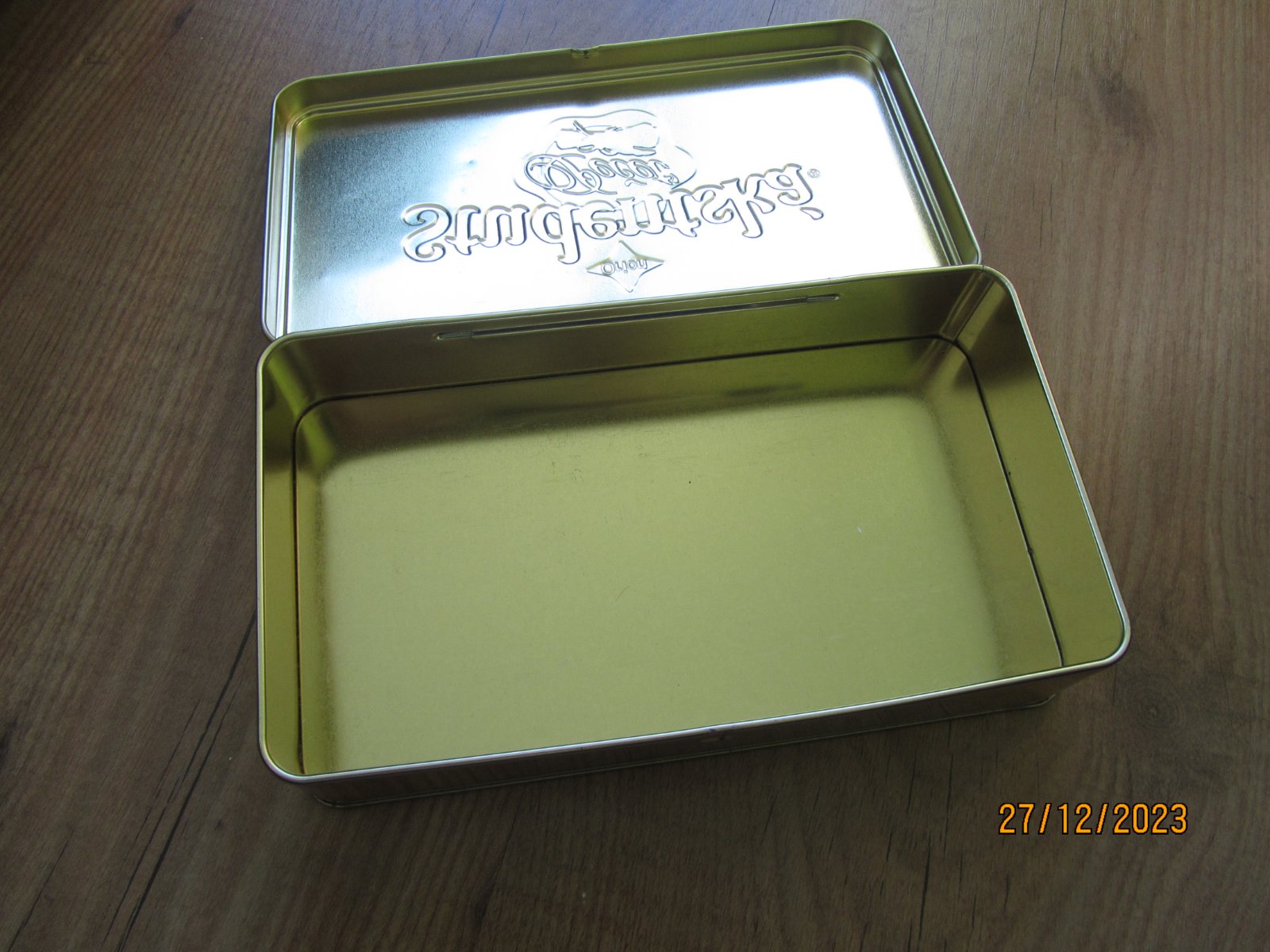 predám plechovú dózu , na boku má jemné pretlačenie, 11ročná vrchnák a malá plocha dnu je mierne zkorodovaná výška - 16cm, priemer dna - 9cm